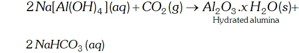 meta-aluminate is neutralized by passing $\mathrm{CO}_{2}$ when hydrated alumina separates out while sodium silicate remains in the solution. The hydrated alumina thus obtained is filtered, dried and heated to give back pure alumina.