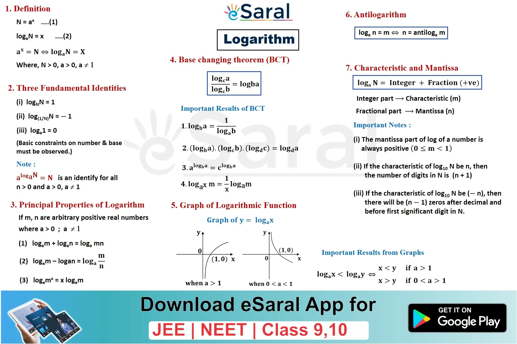 Get to learn all the formulae and important points of Logarithm through this Mind Map. Download and share with your friends also.