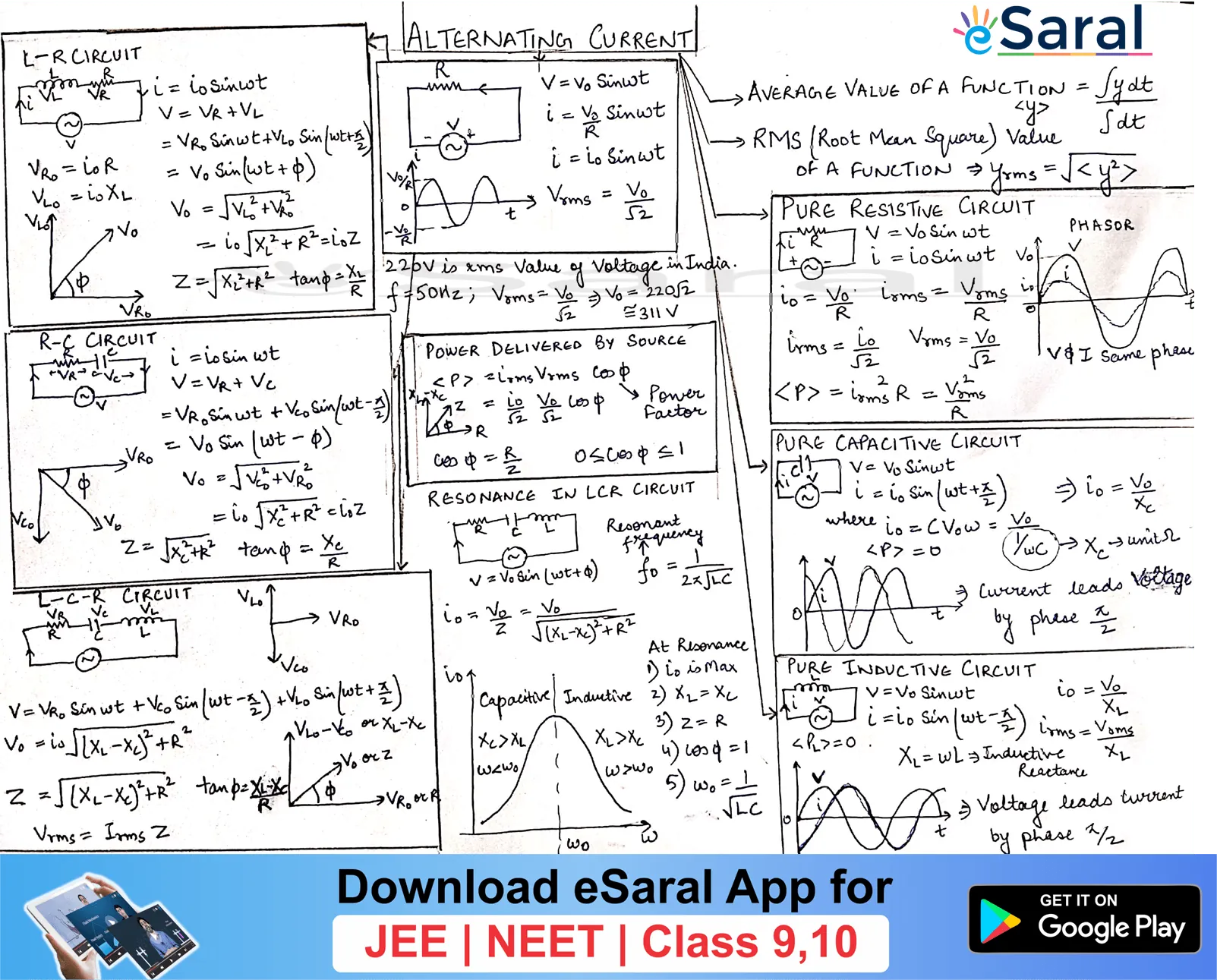 Alternating Current in Class 12th comprises variety of cases with important formulae and key points. So here is the mind map to help you in remembering all the formulae and important key concepts on finger tips.