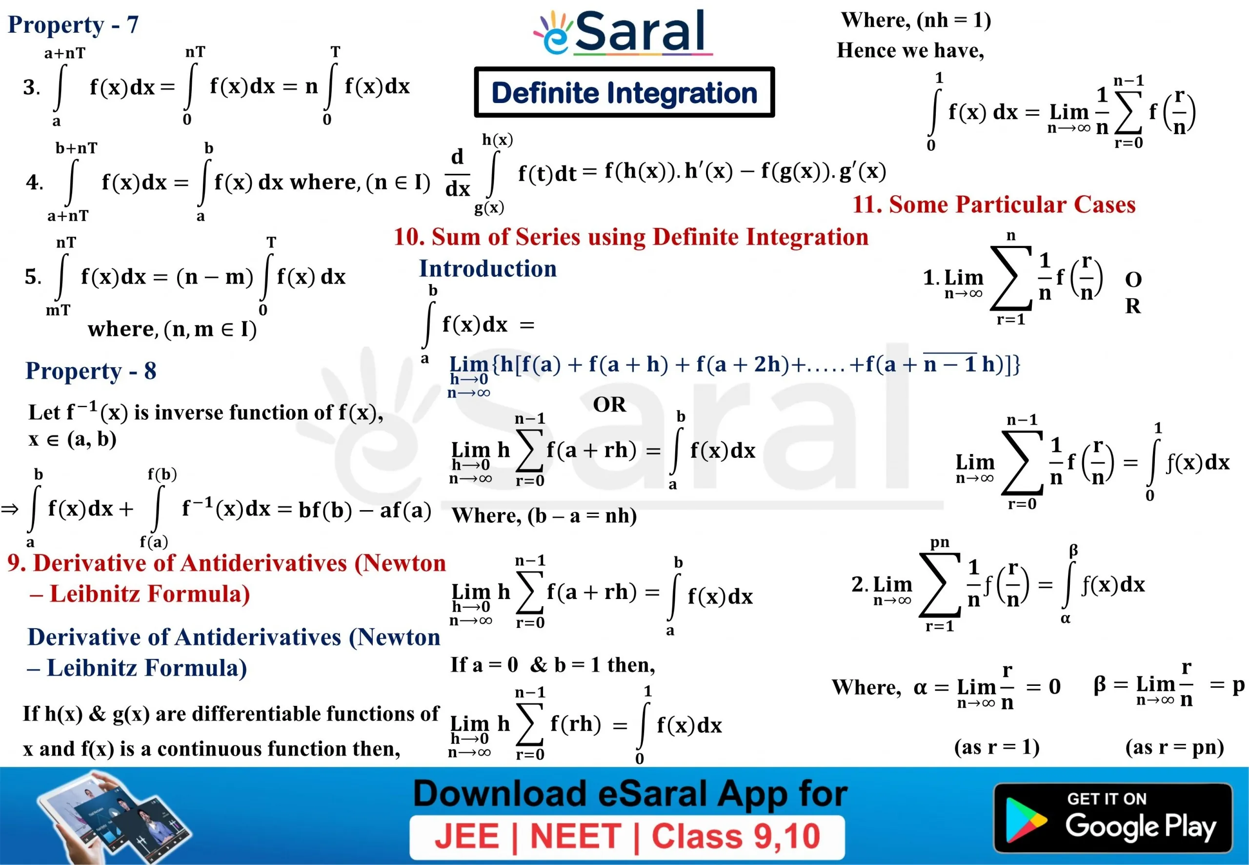 Mind Maps For Definite Integration - Class 12, JEE (Main + Advanced)