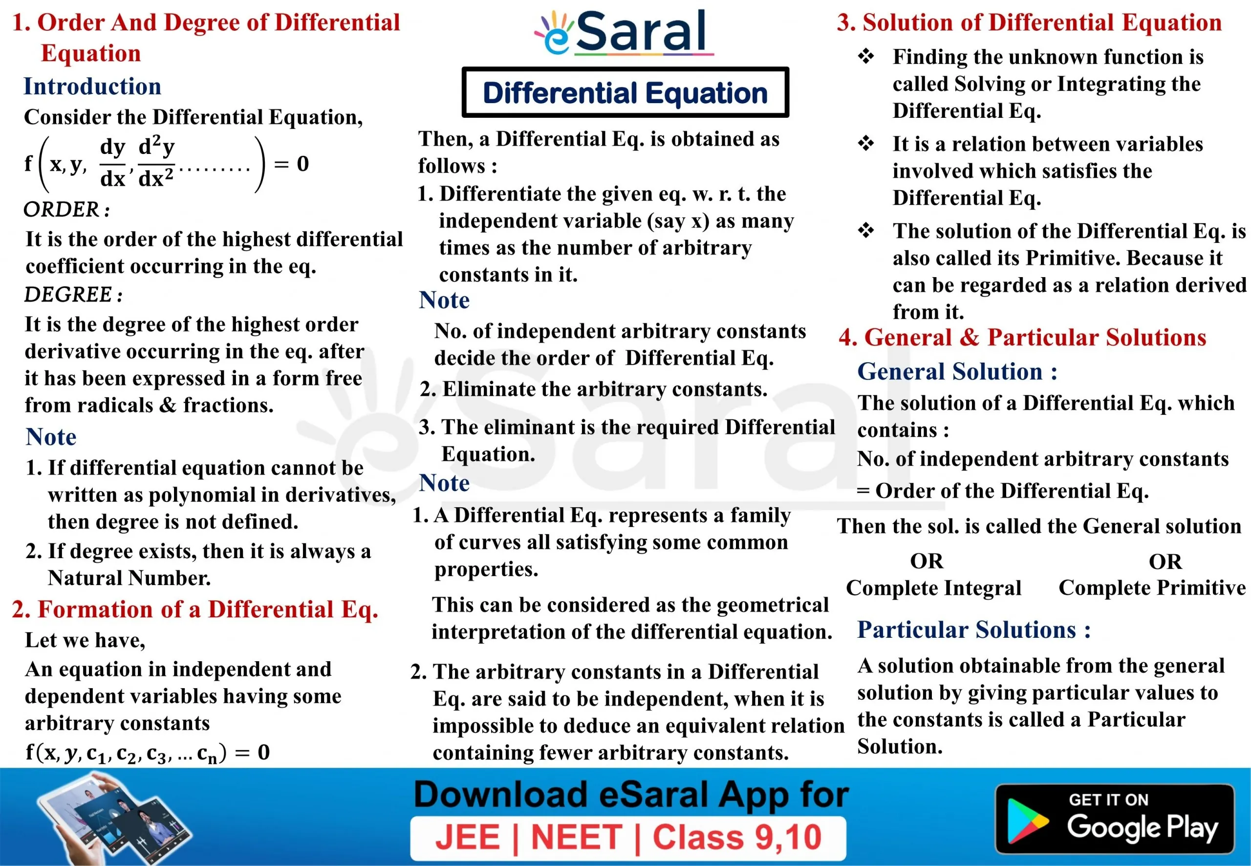 Get to learn all the formulae and important points of Class 12th Chapter Differential Equation through these Mind Maps. Download and share with your friends also.