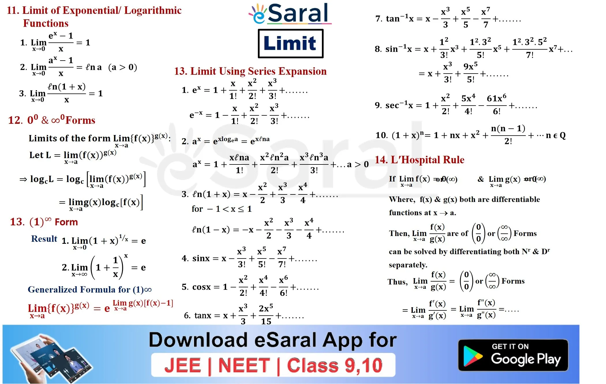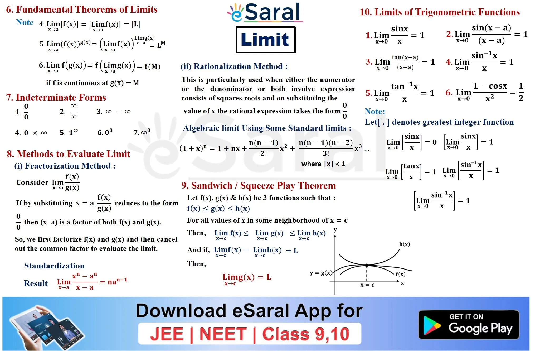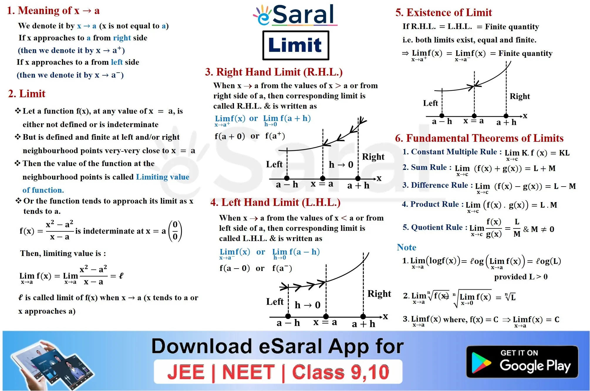 JEE Mains & AdvancedGet to learn all the formulae and important points of Class 11th Chapter Limits through this Mind Map. Download and share with your friends also.