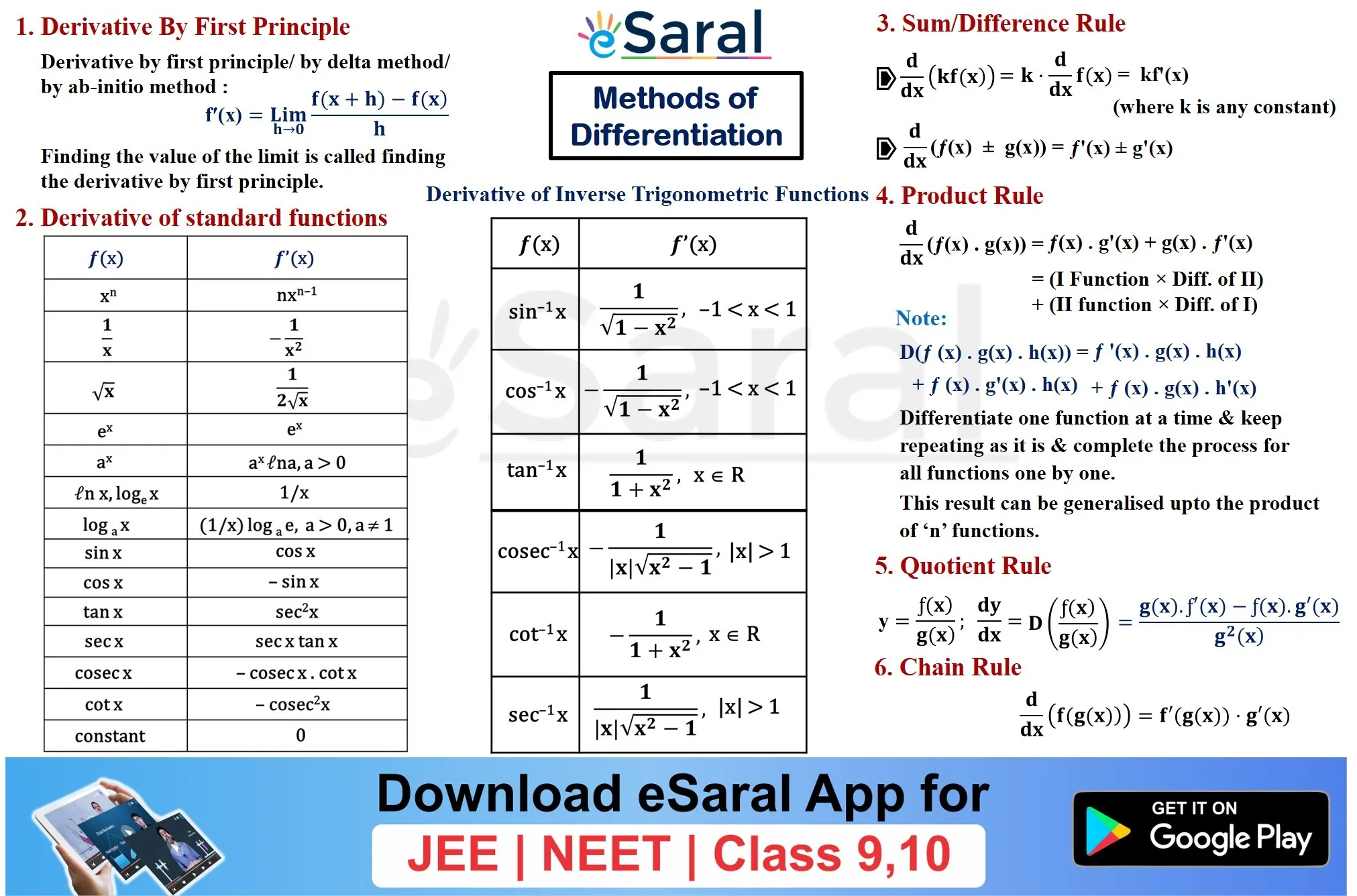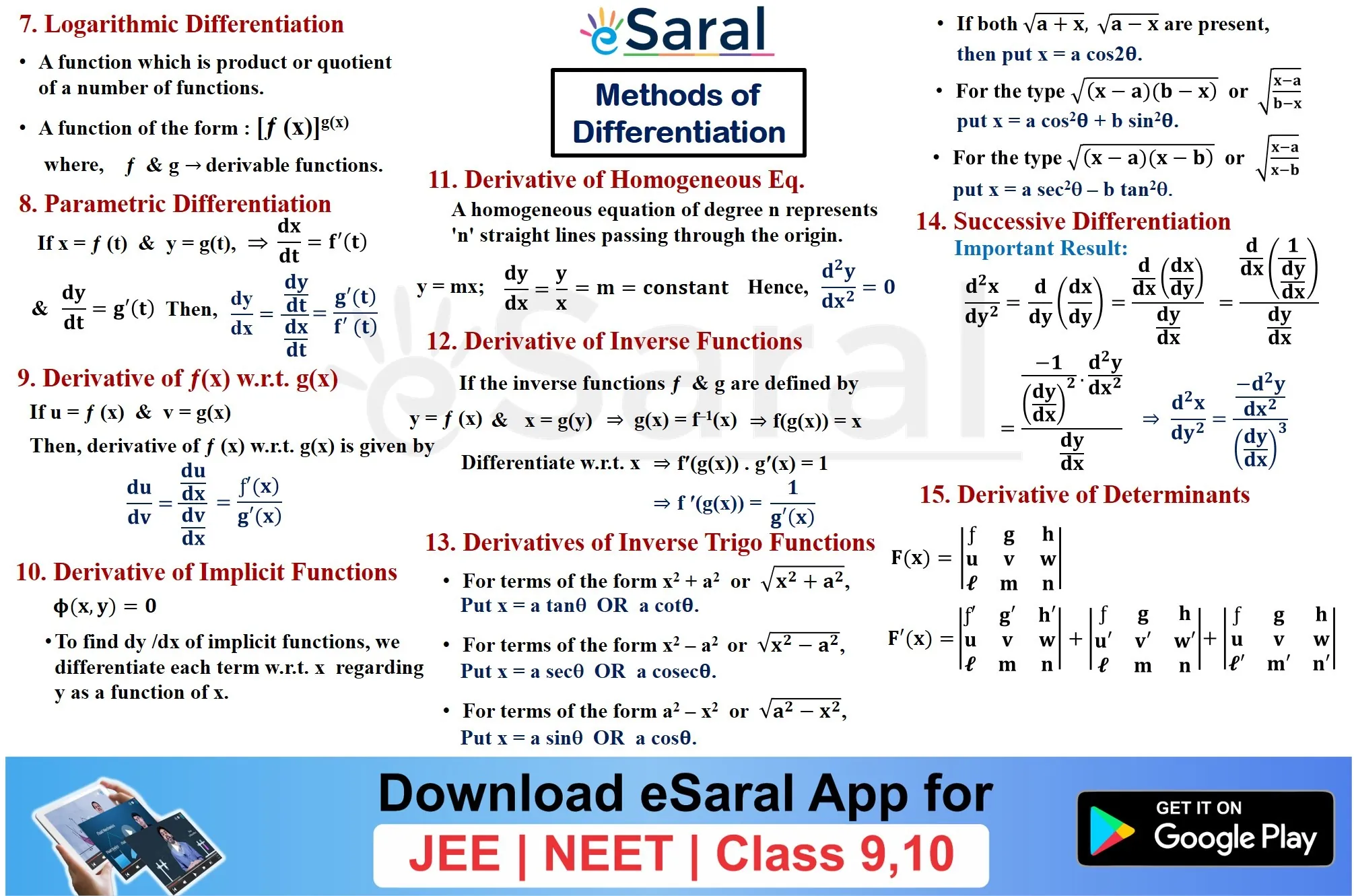 Mind Maps for Methods of Differentiation Revision - Class 12, JEE (Main + Advanced)