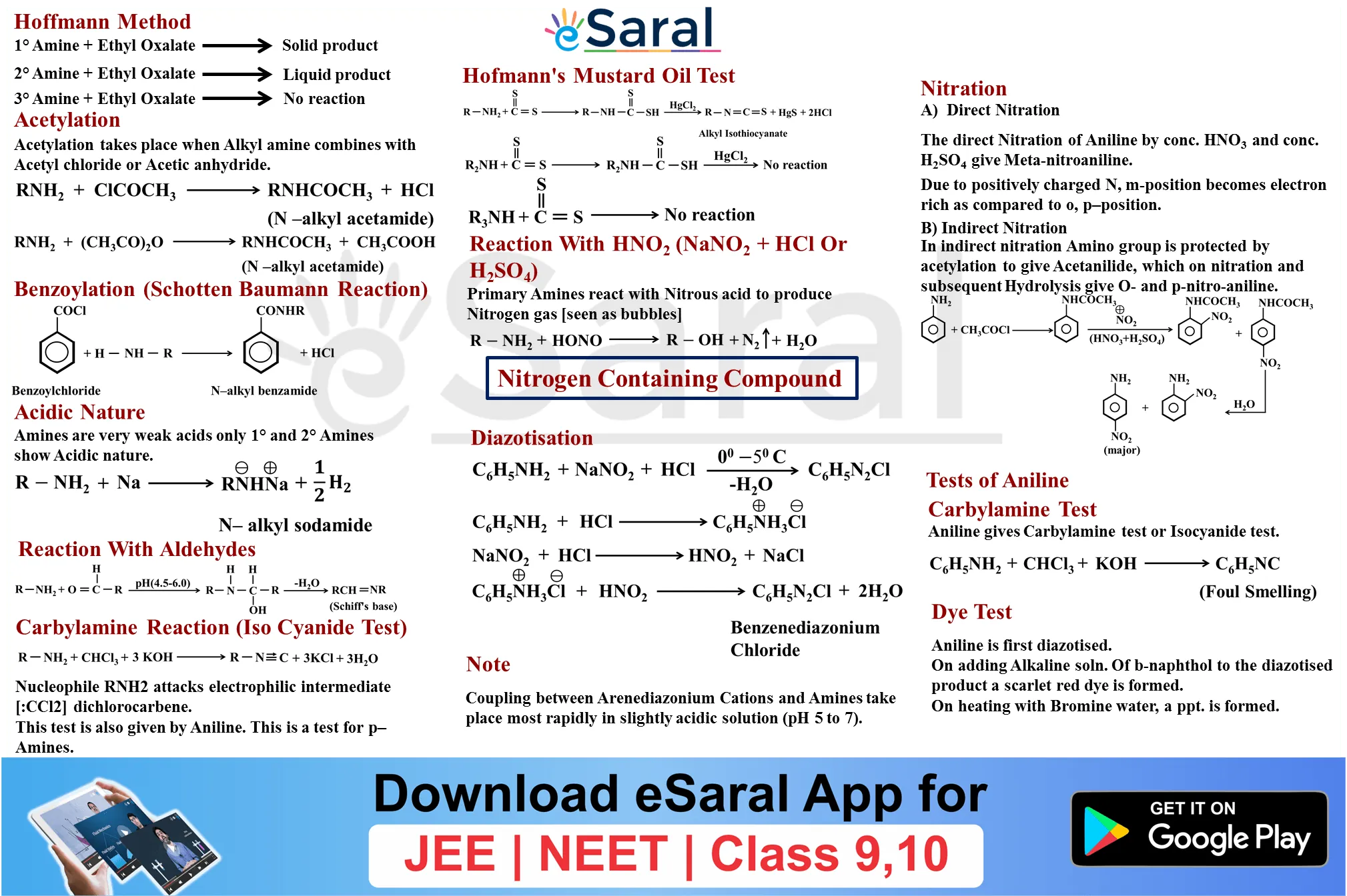 Get to learn all the important reactions mechanisms and important points of Nitrogen Organic Compounds Class 12th. Download and share with your friends also.