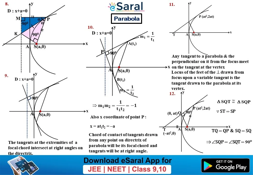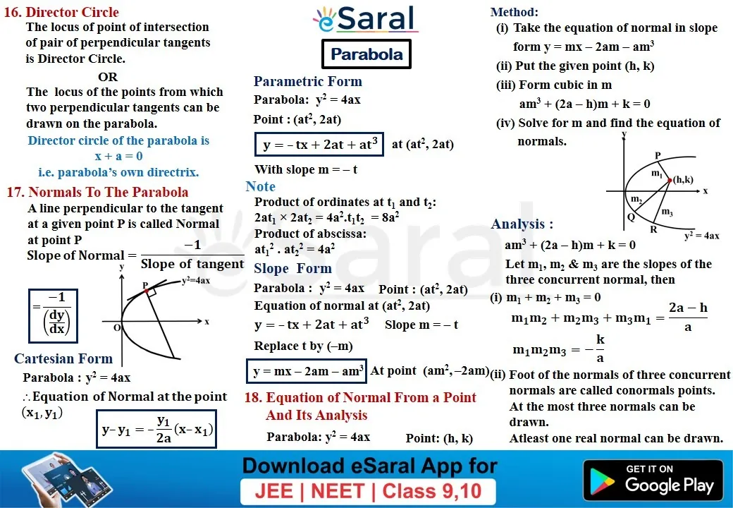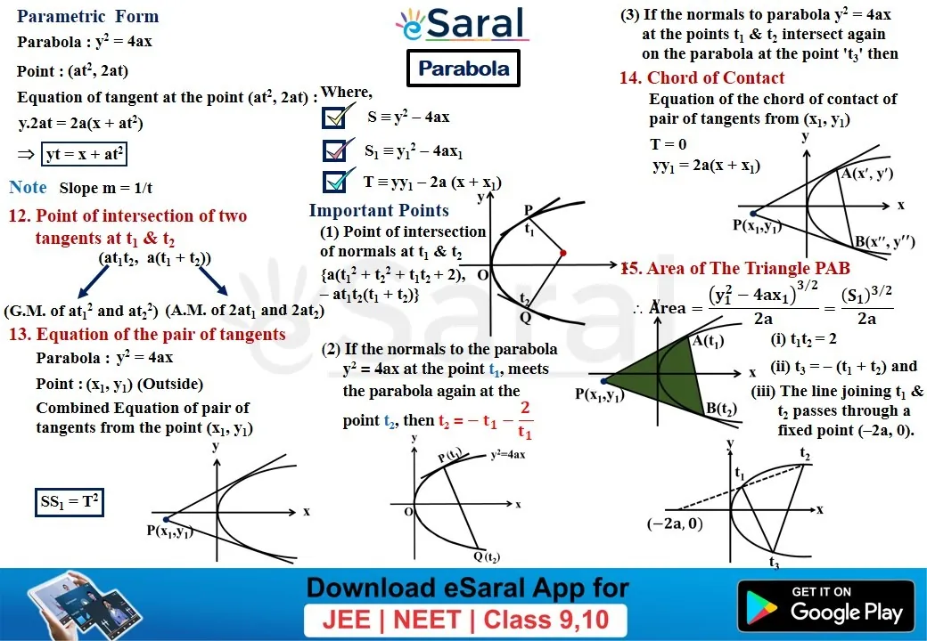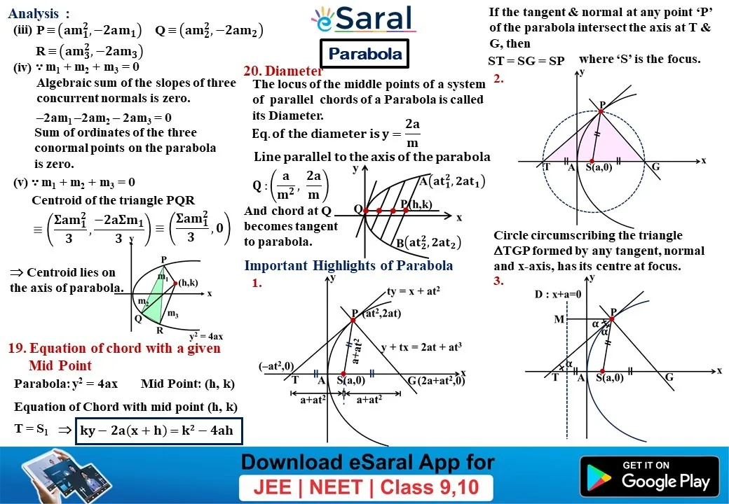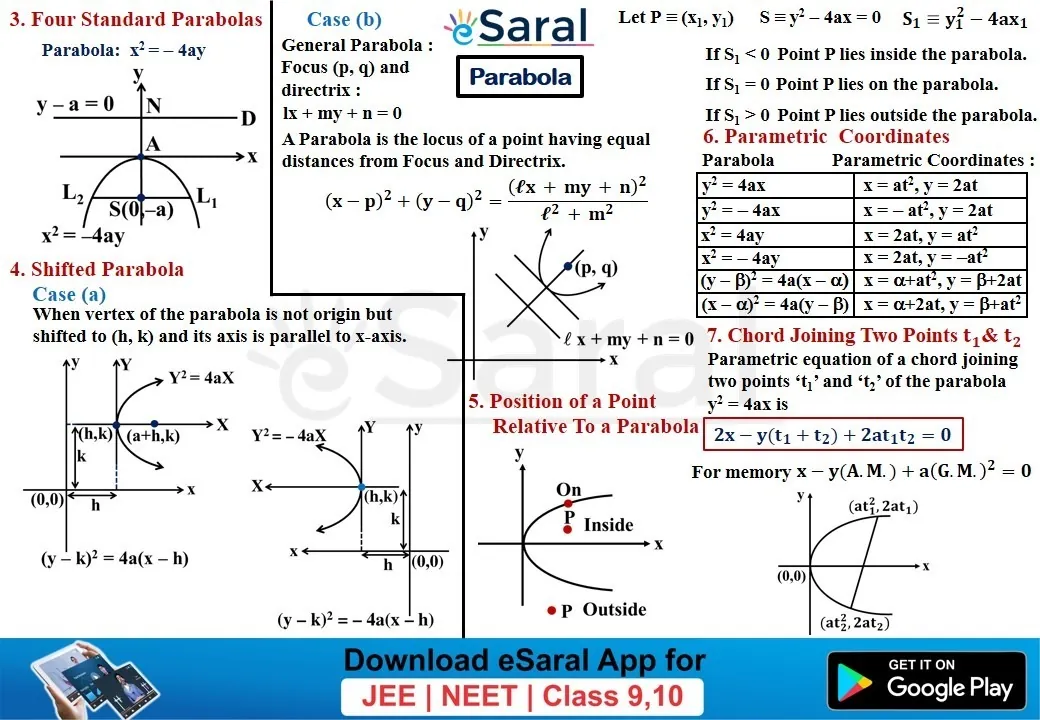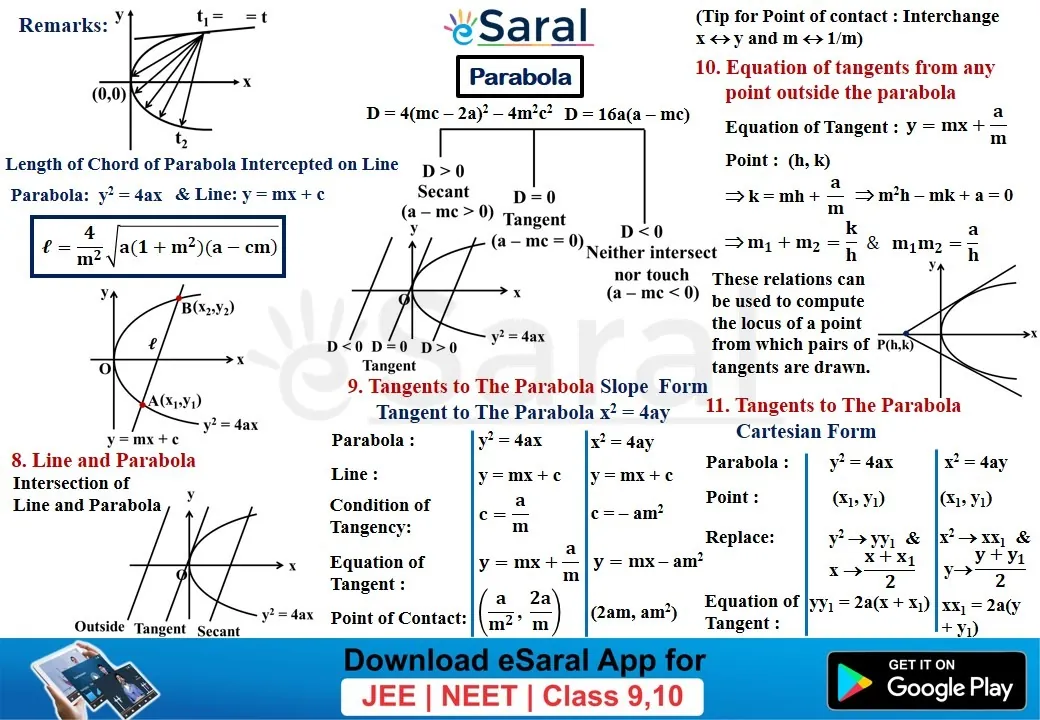 Mind Maps For Parabola - Class 11, 12 , JEE (Main + Advanced)