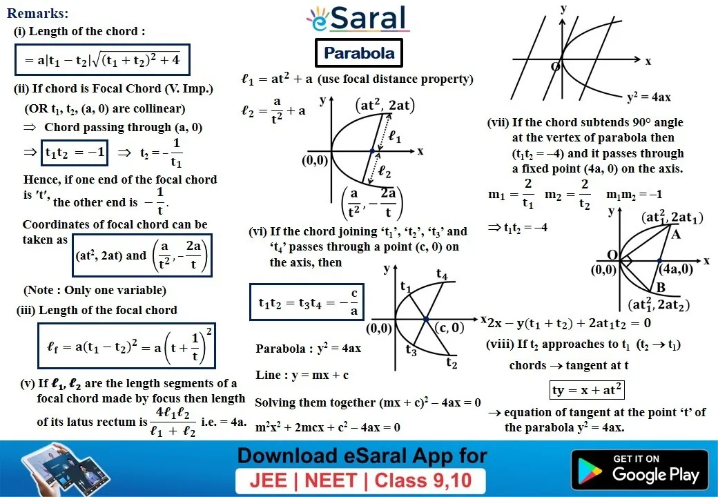 JEE Mains & AdvancedGet to learn all the formulae and important points of Chapter Parabola through these Mind Maps. Download and share with your friends also.