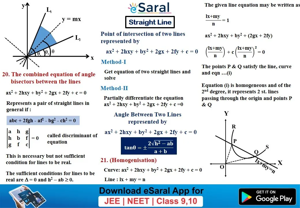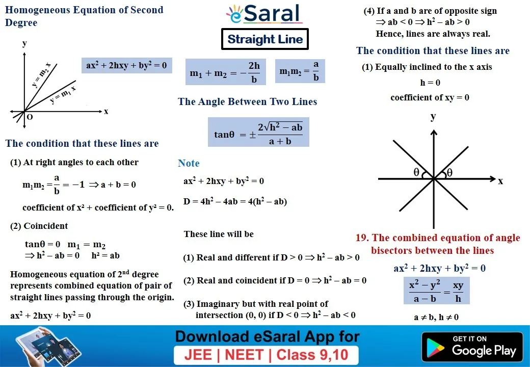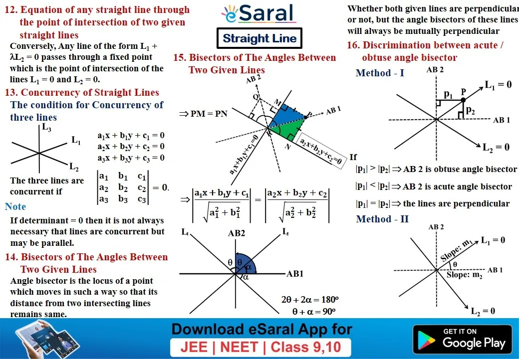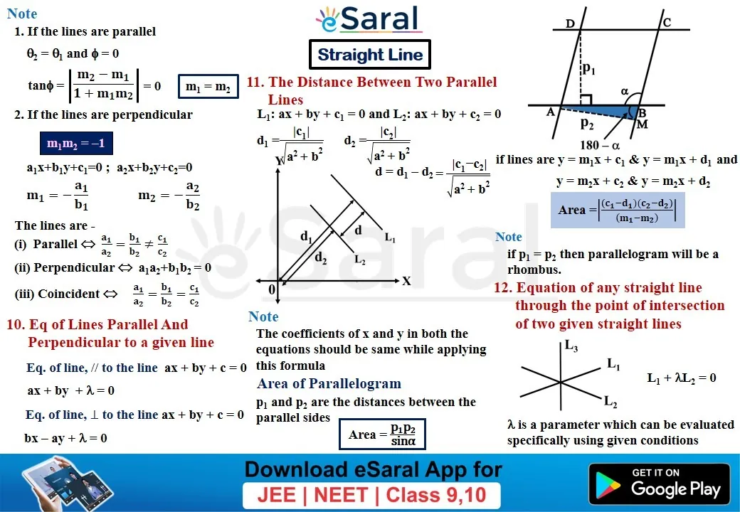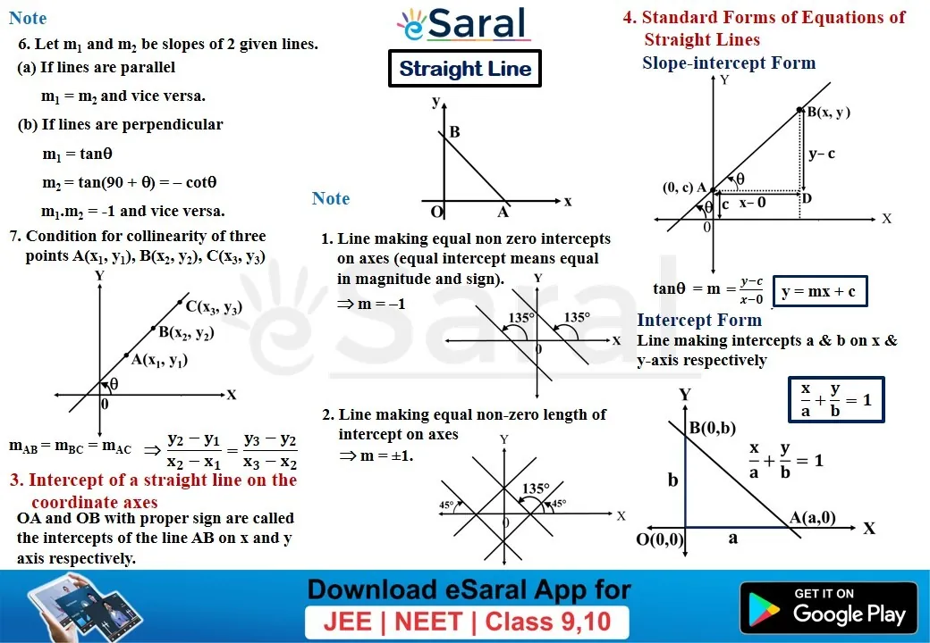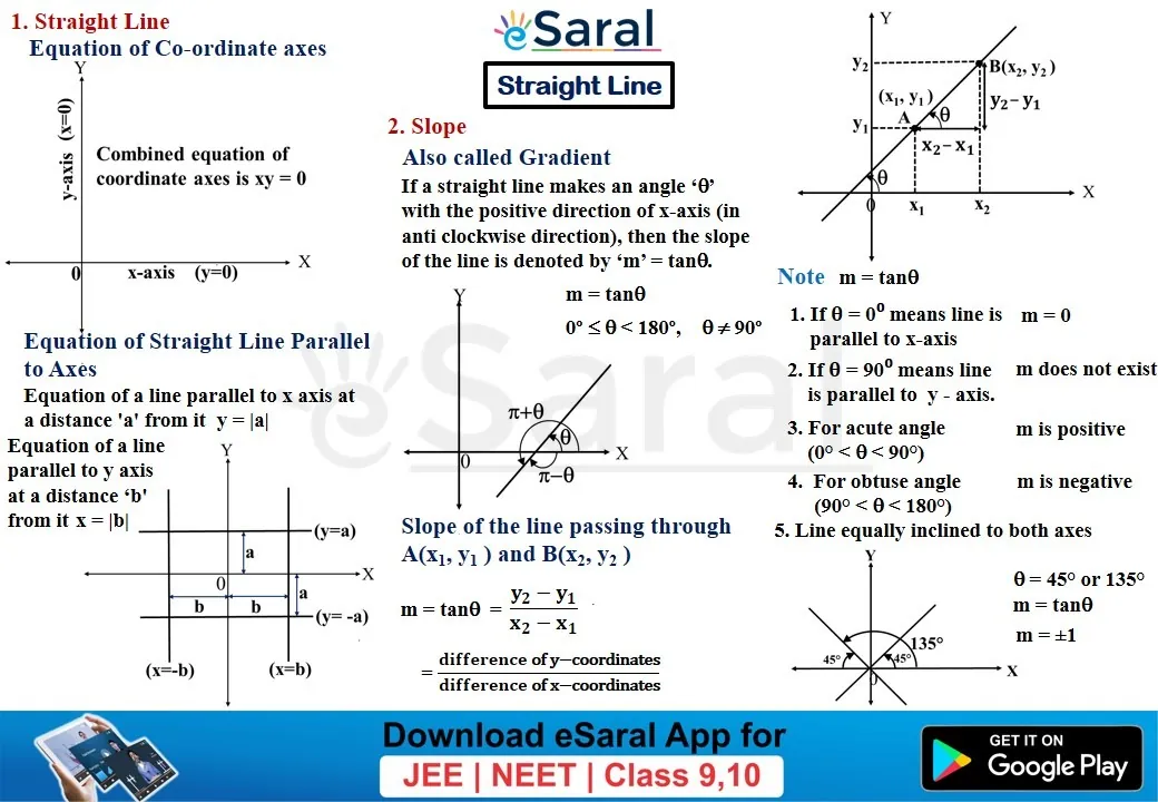 Mind Maps For Straight Line - Class 11, 12 , JEE (Main + Advanced)