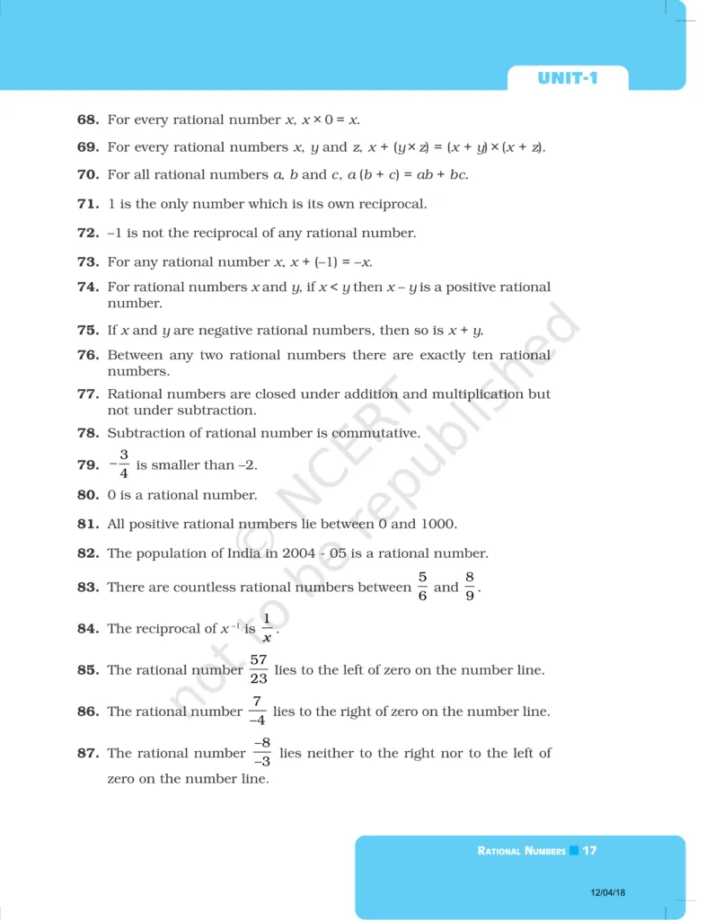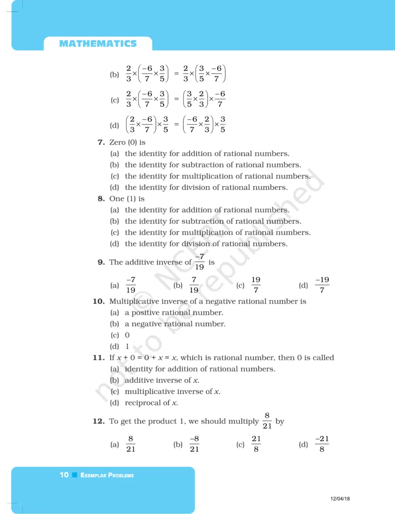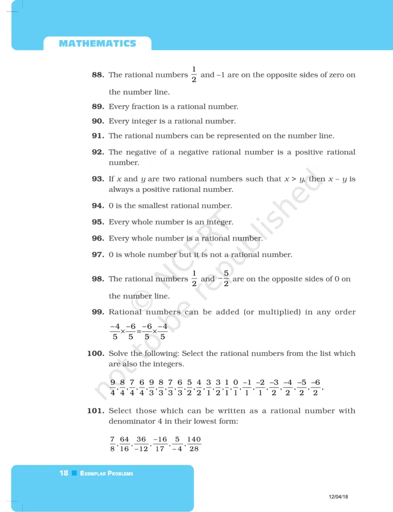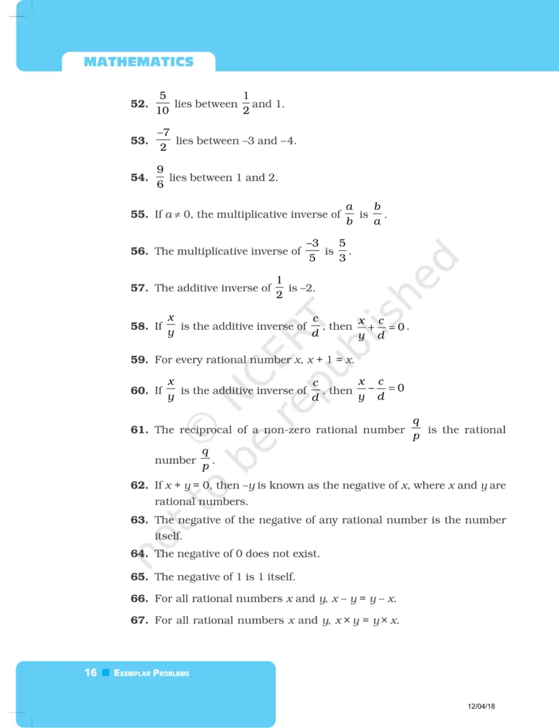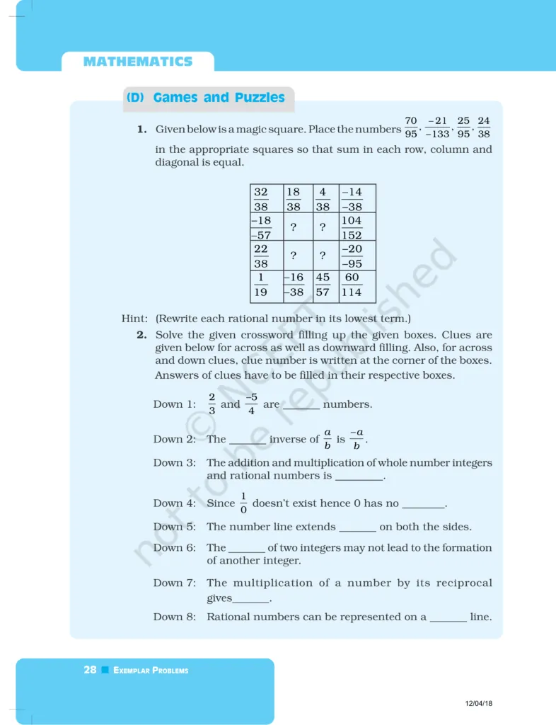 Download The PDF of NCERT Exemplars Class 8 Maths Chapter 1 "Rational Numbers"