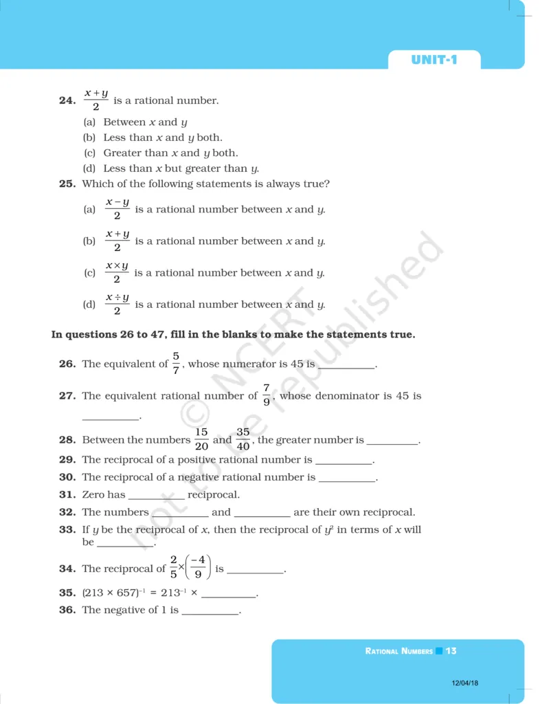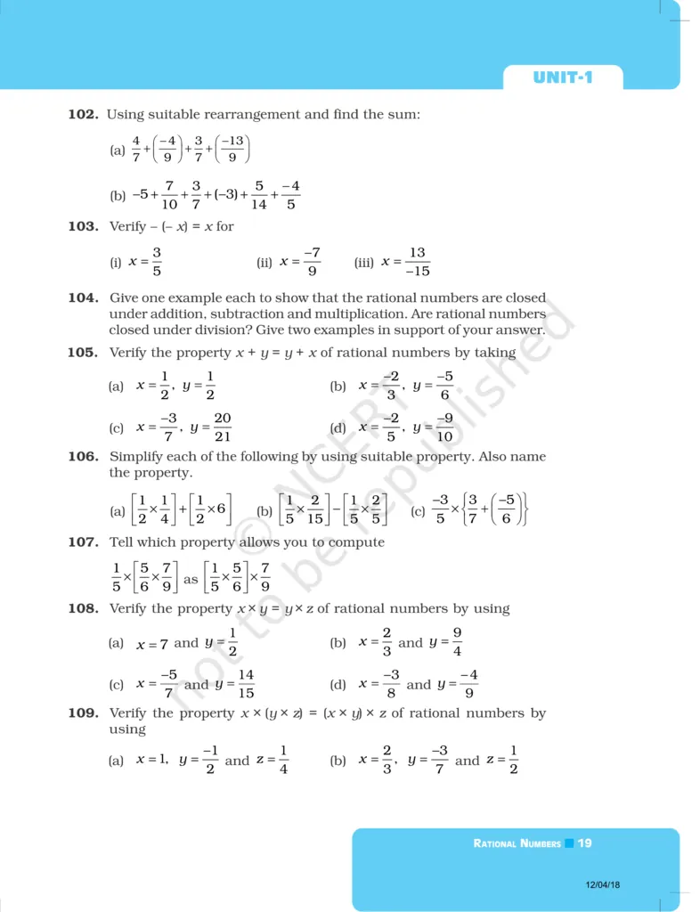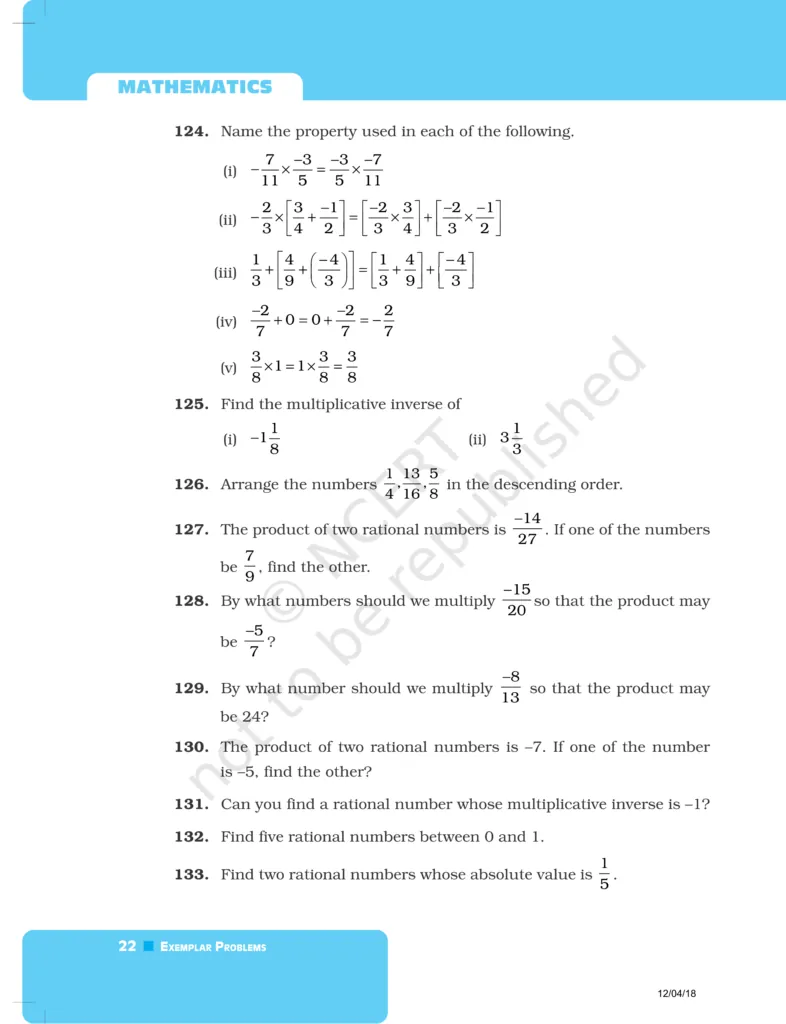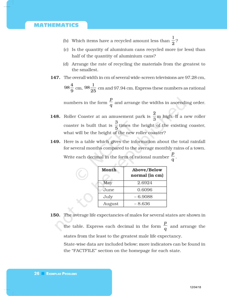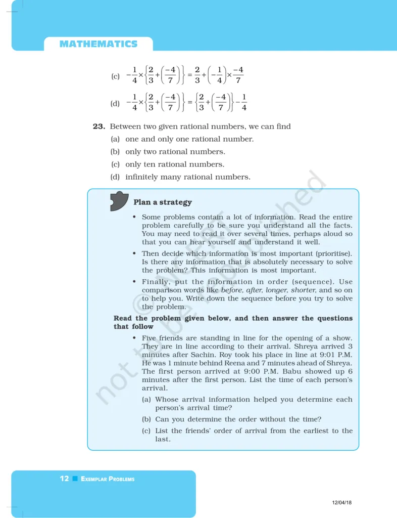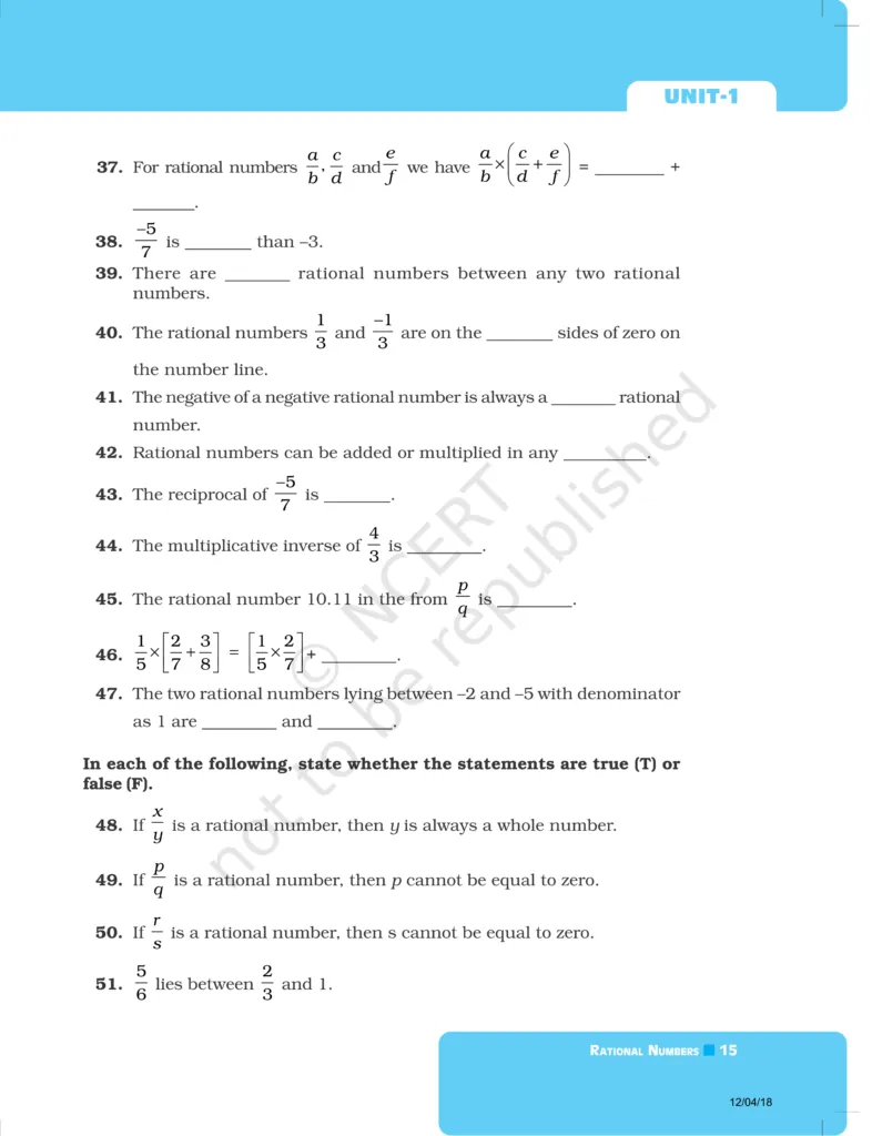 Download The PDF of NCERT Exemplars Class 8 Maths Chapter 1 "Rational Numbers"