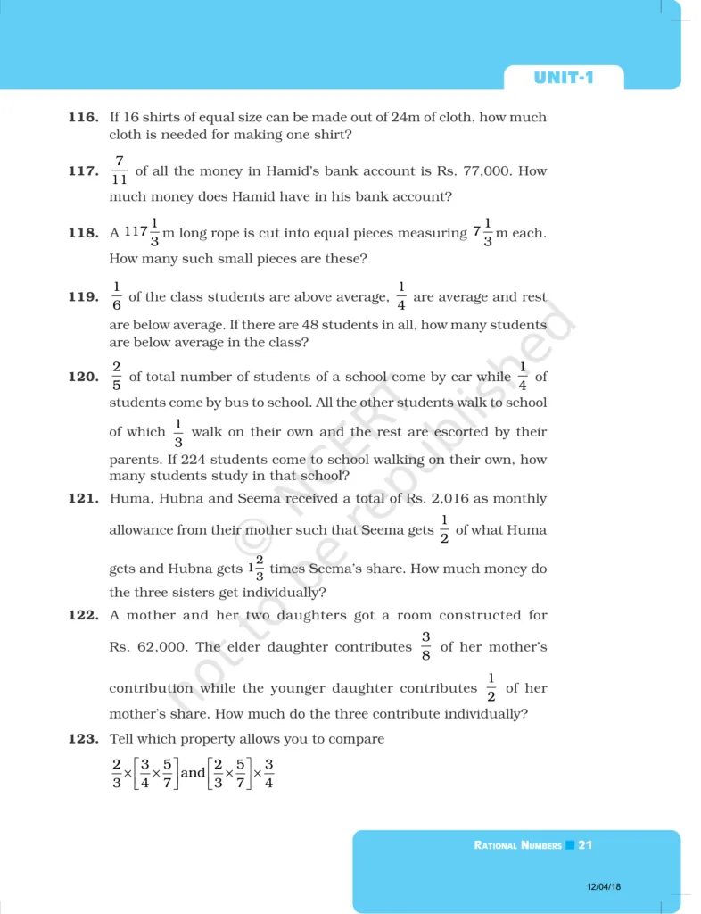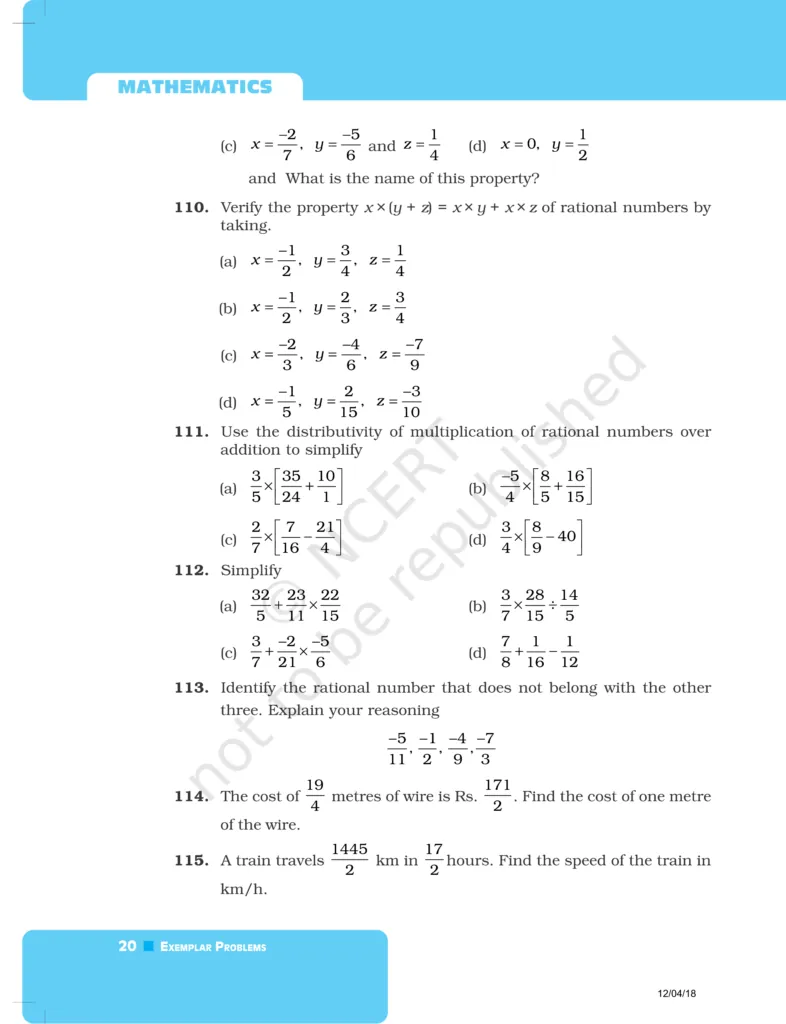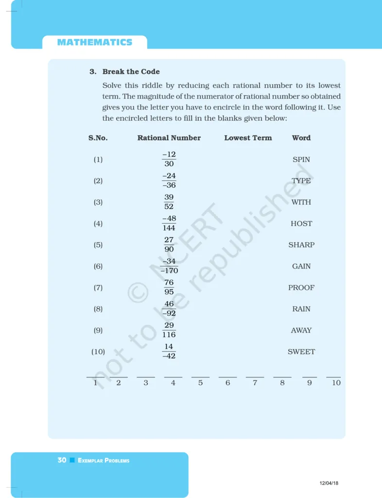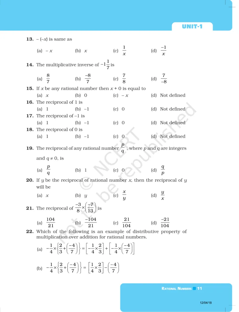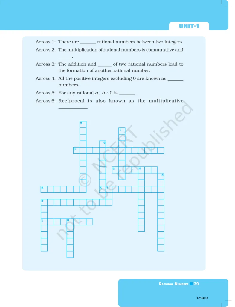 Download The PDF of NCERT Exemplars Class 8 Maths Chapter 1 "Rational Numbers"