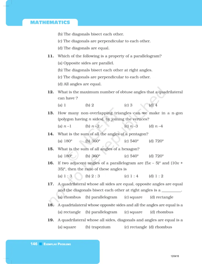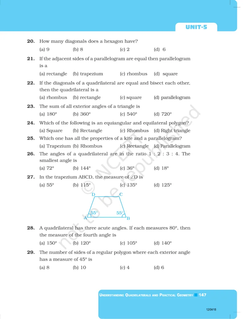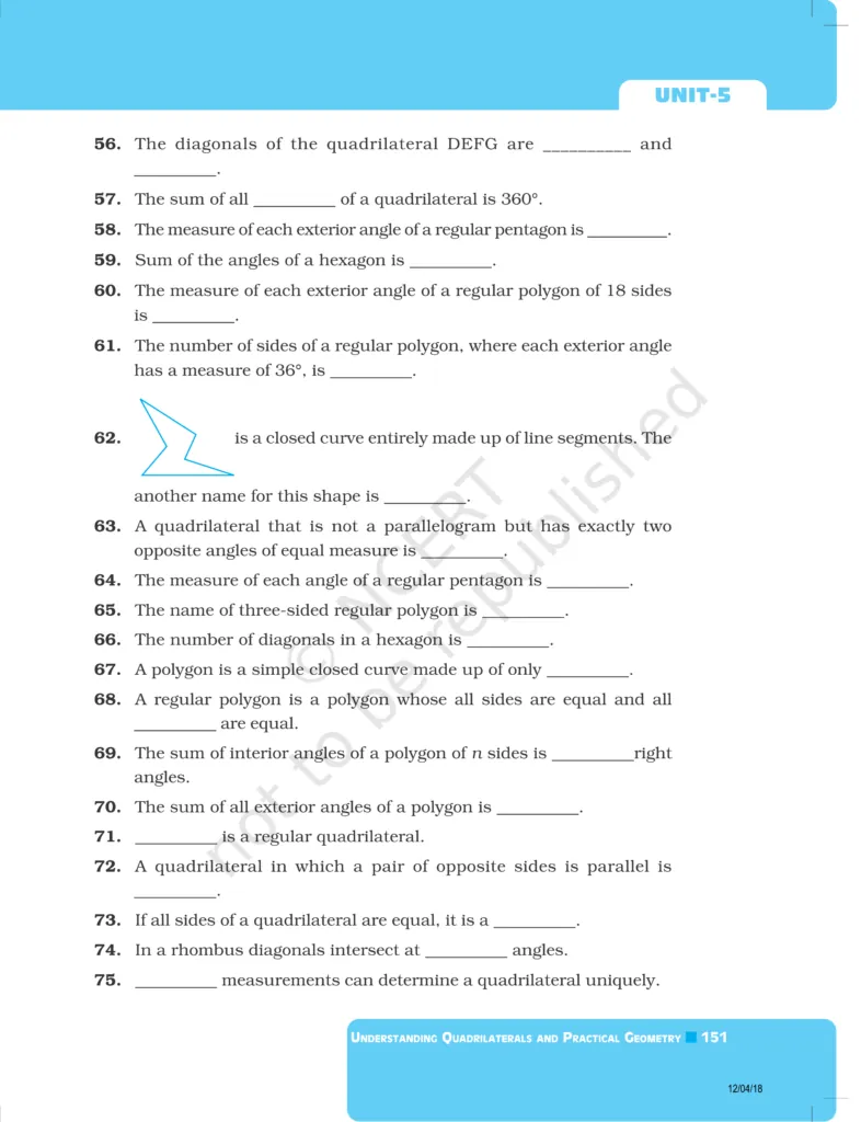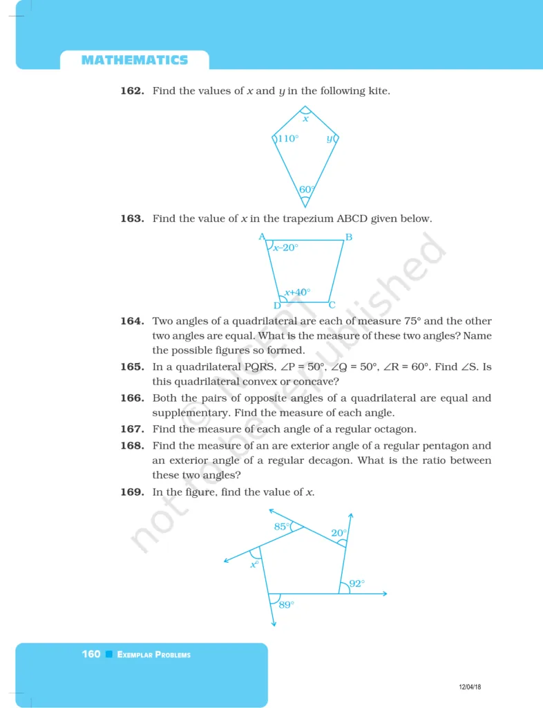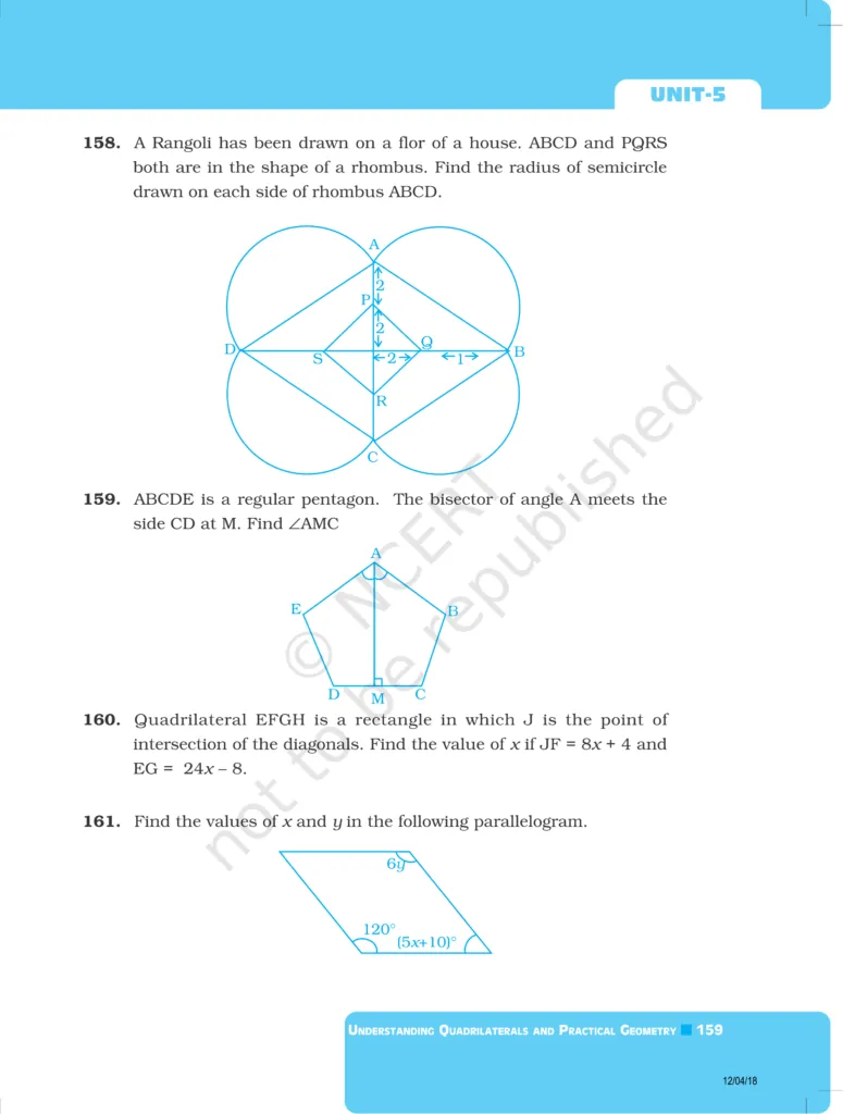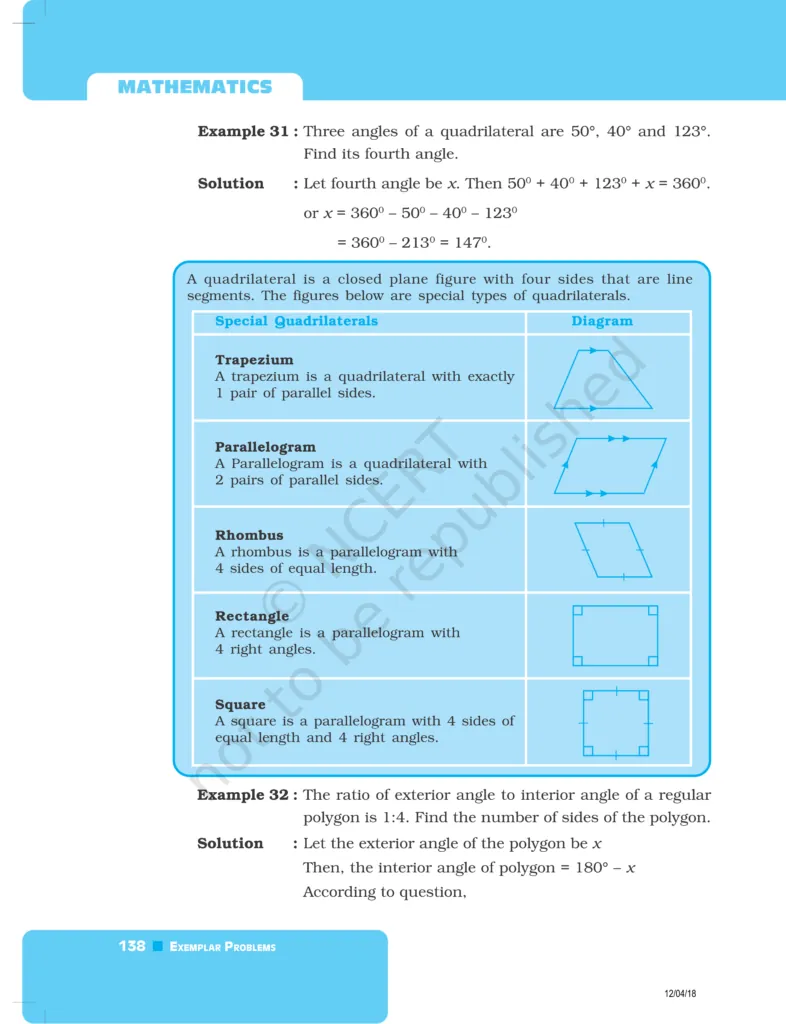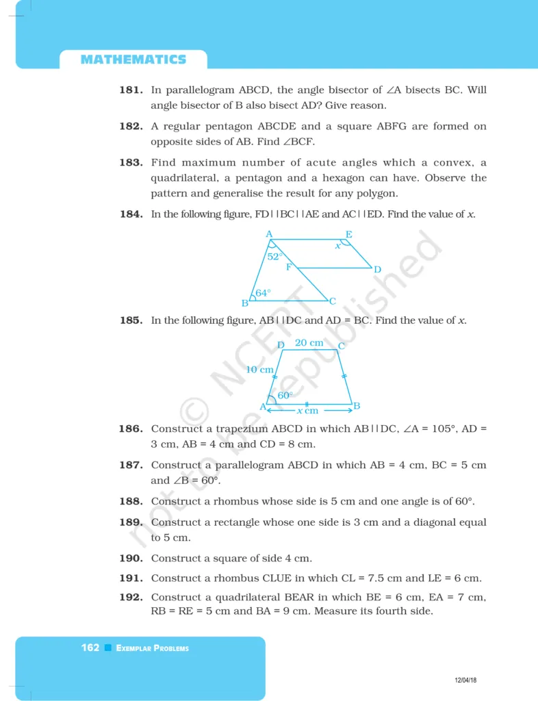 Download The PDF of NCERT Exemplars Class 8 Maths Chapter 5 "Understanding Quadrilaterals and Practical Geometry"