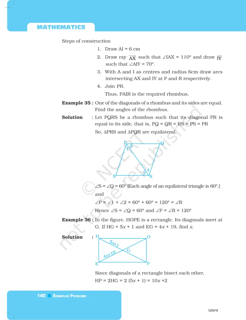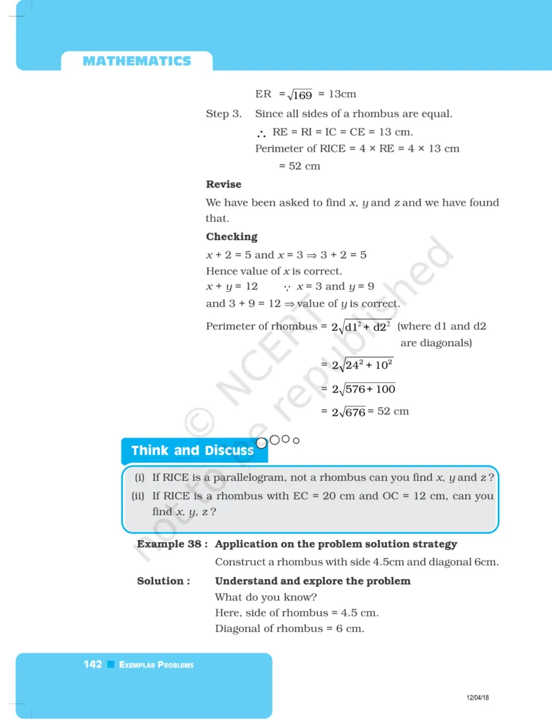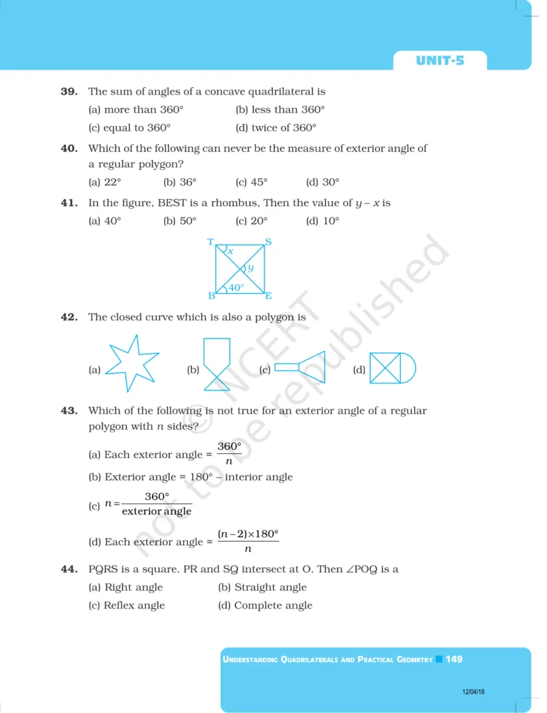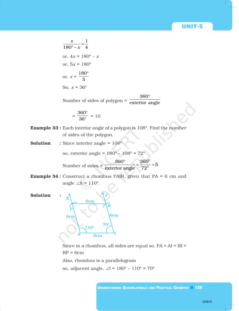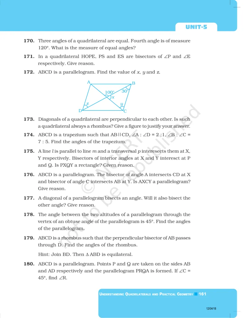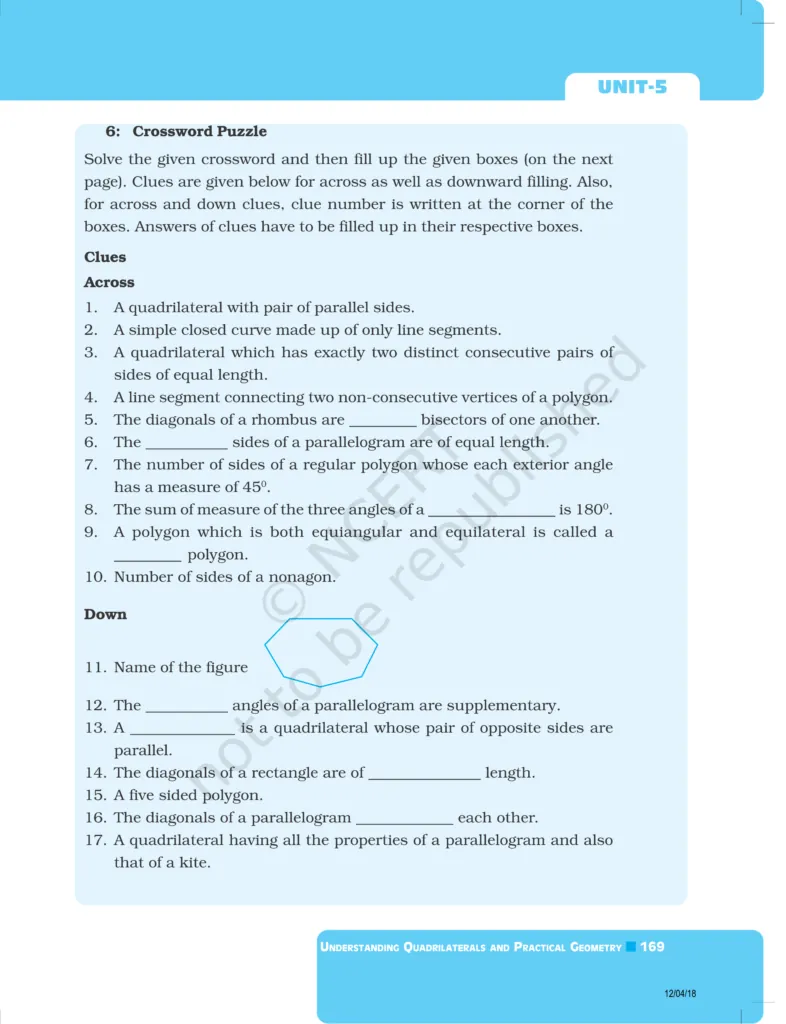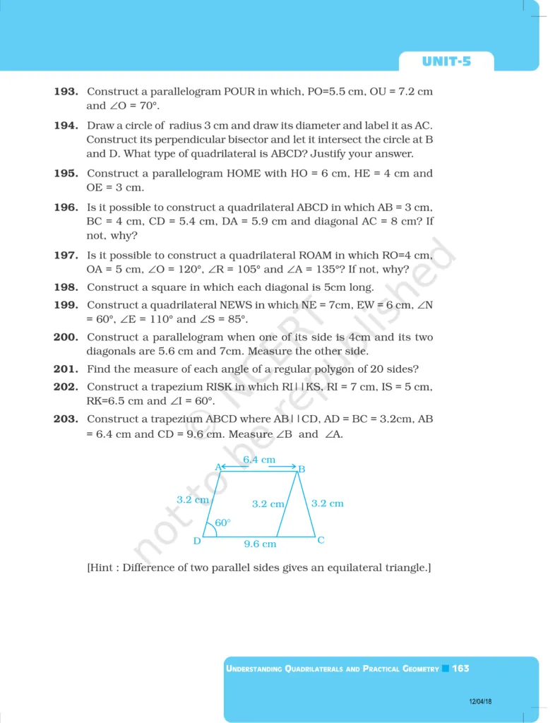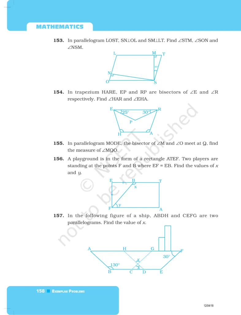 Download The PDF of NCERT Exemplars Class 8 Maths Chapter 5 "Understanding Quadrilaterals and Practical Geometry"