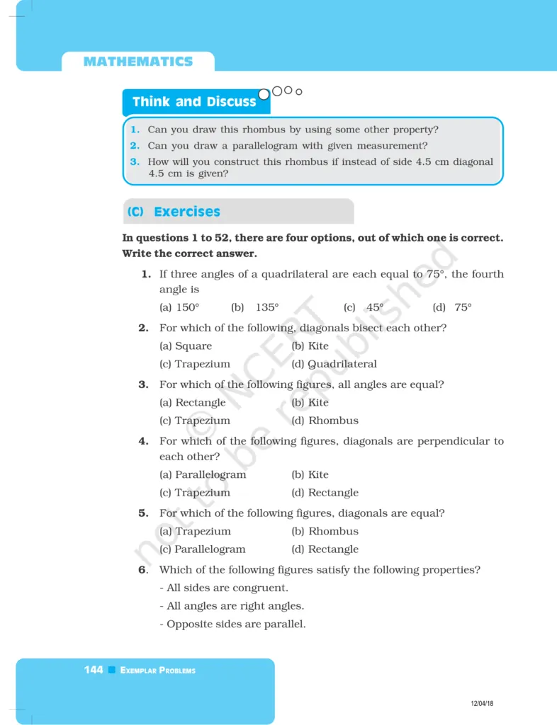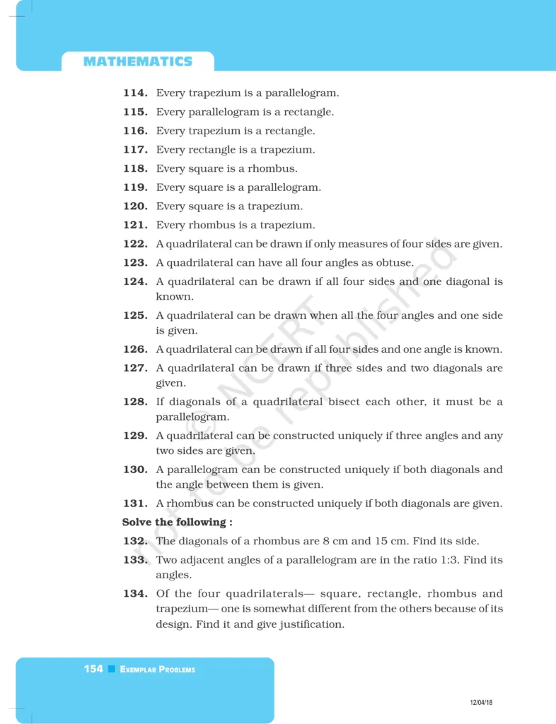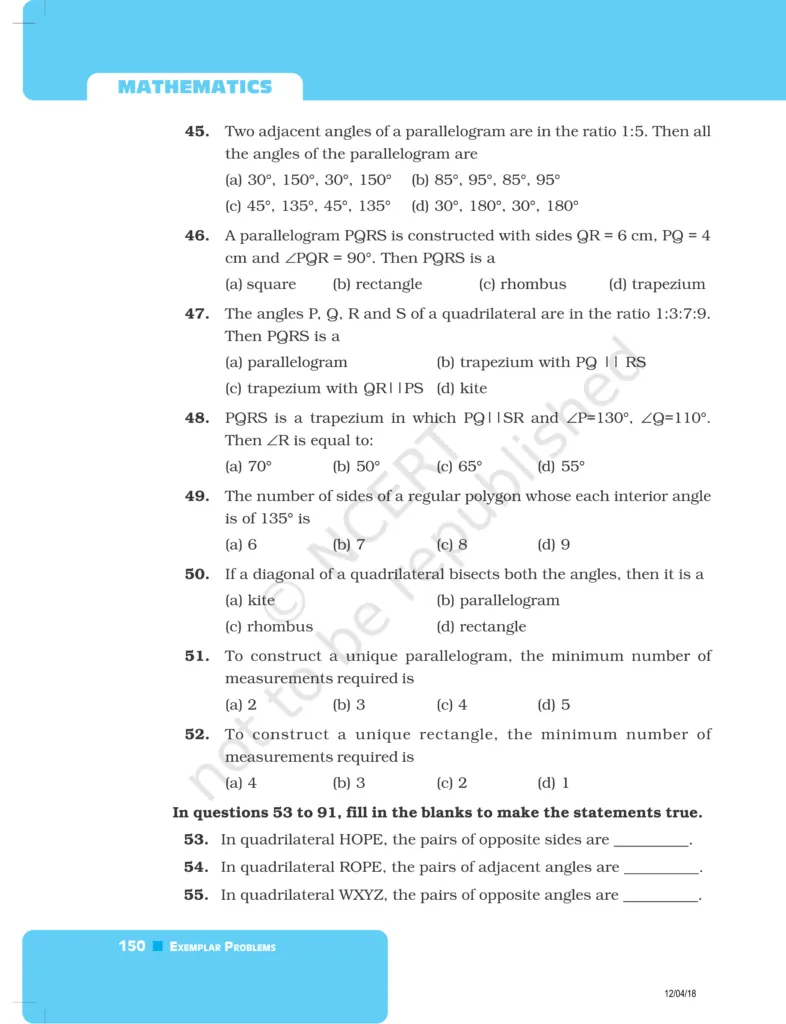 So, without wasting more time let’s start.Download The PDF of NCERT Exemplars Class 8 Maths Chapter 5 "Understanding Quadrilaterals and Practical Geometry"