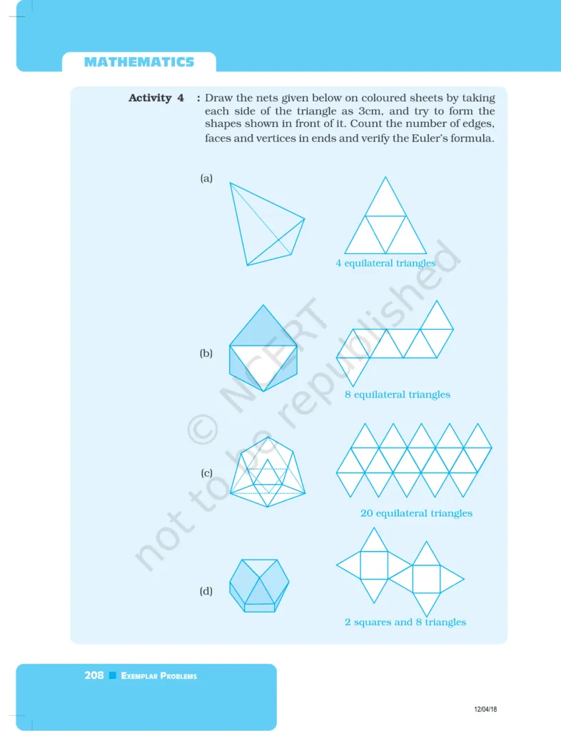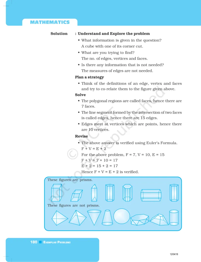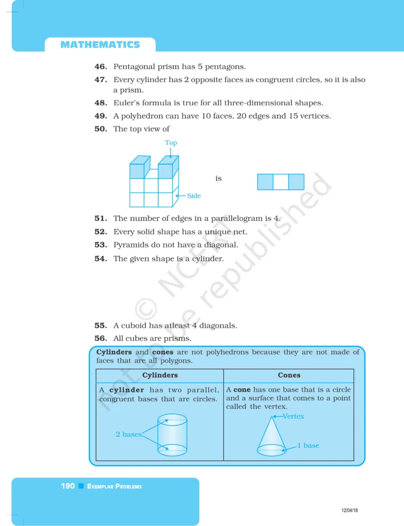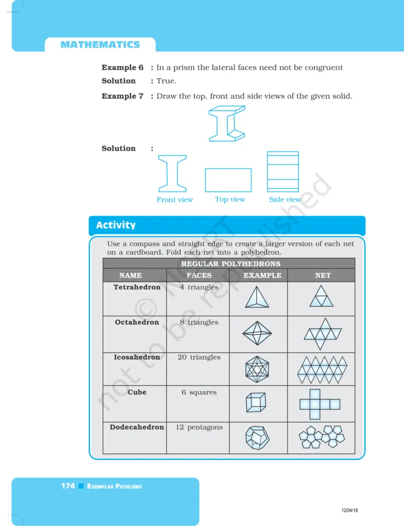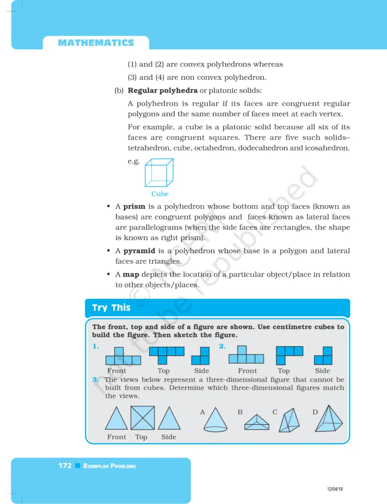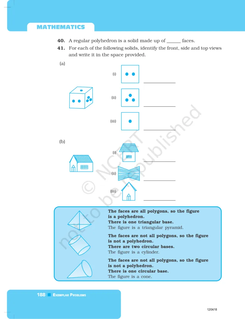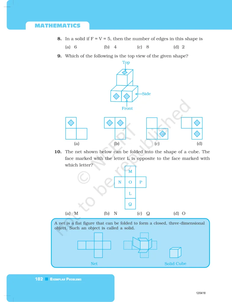 Download The PDF of NCERT Exemplars Class 8 Maths Chapter 6 "Visualising solid shapes"