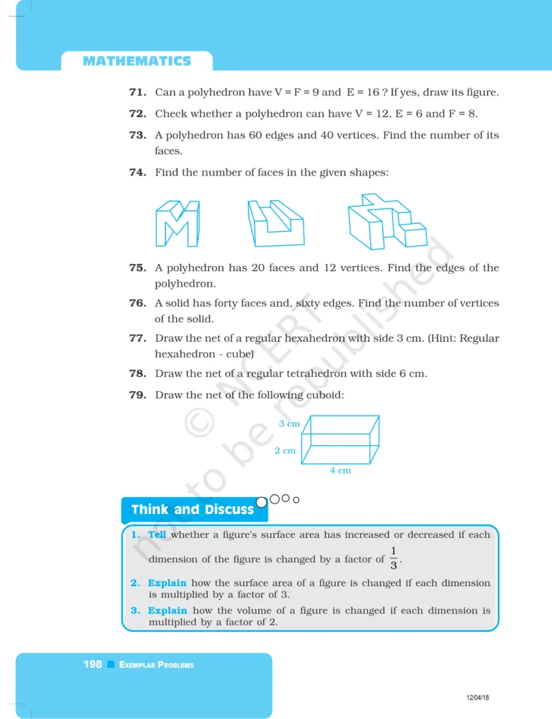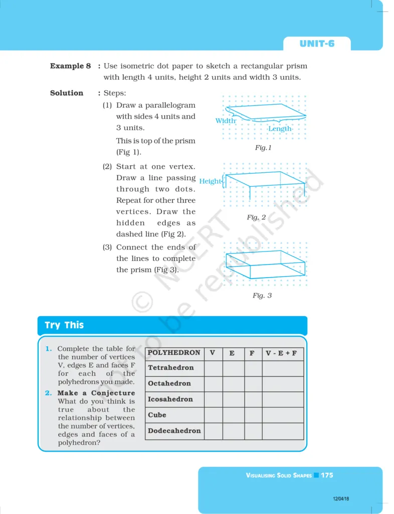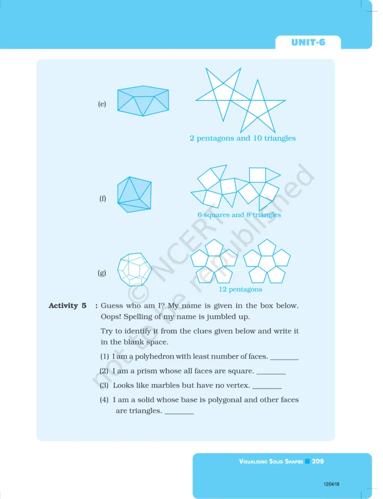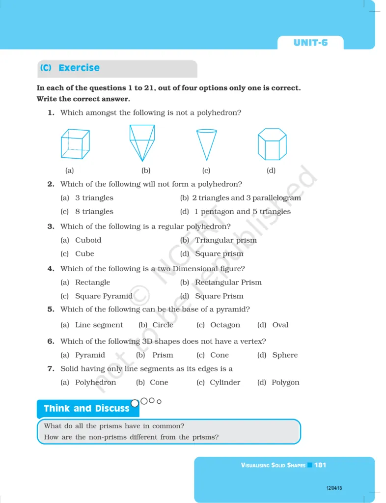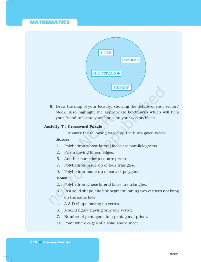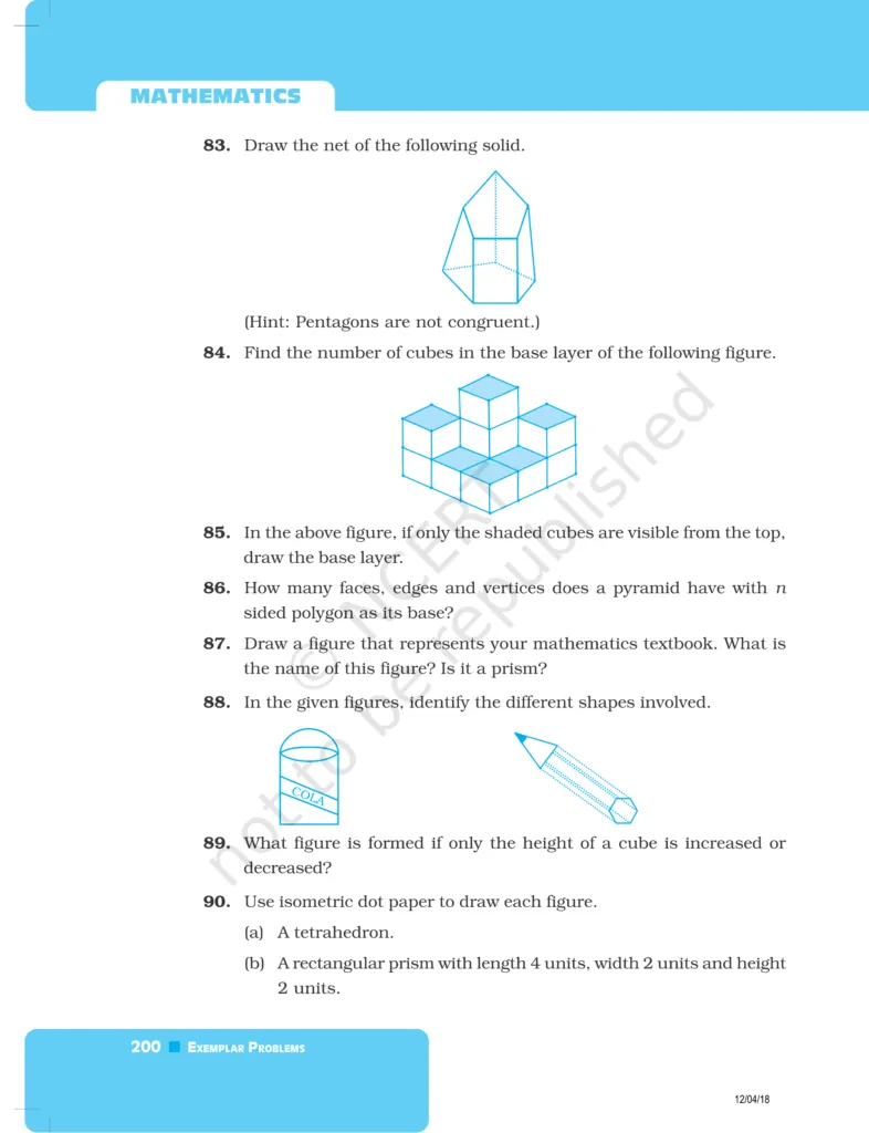 Download The PDF of NCERT Exemplars Class 8 Maths Chapter 6 "Visualising solid shapes"