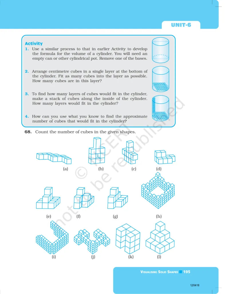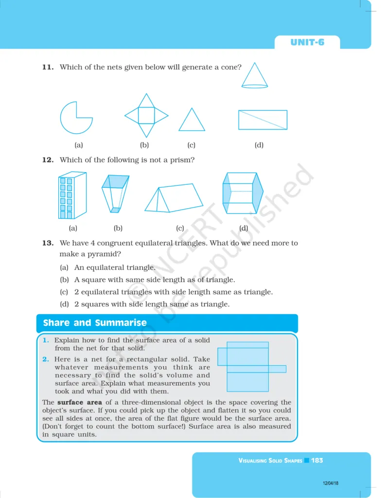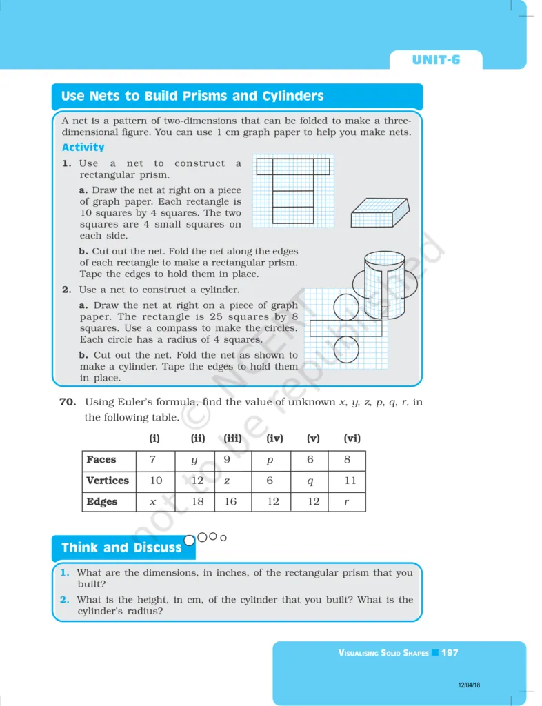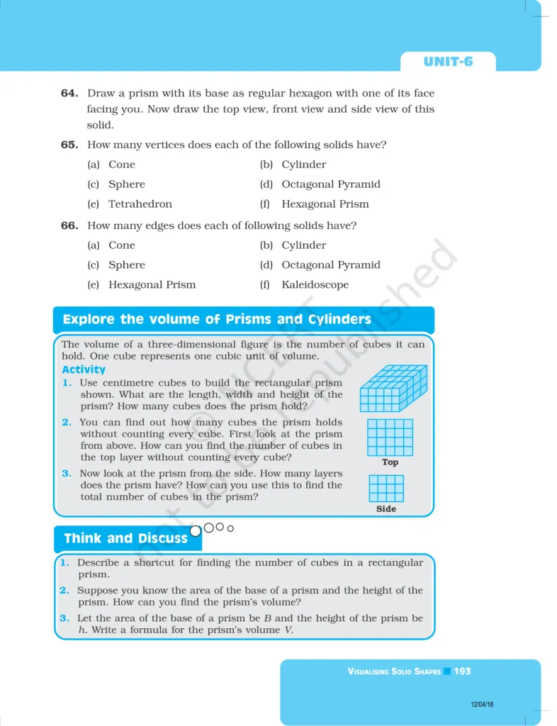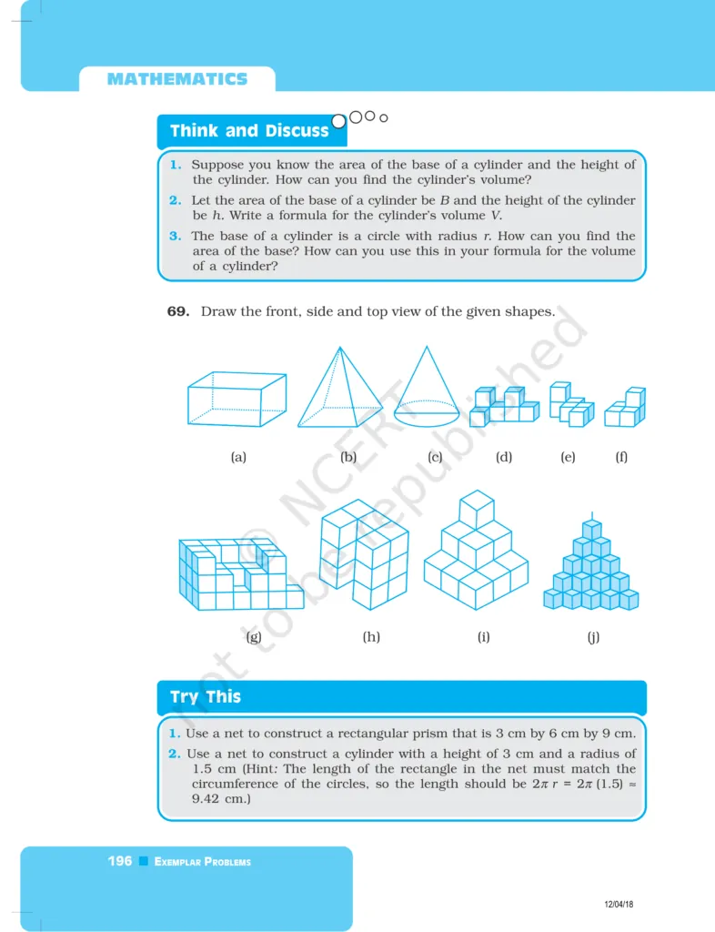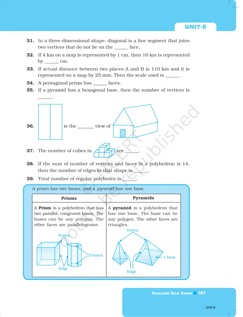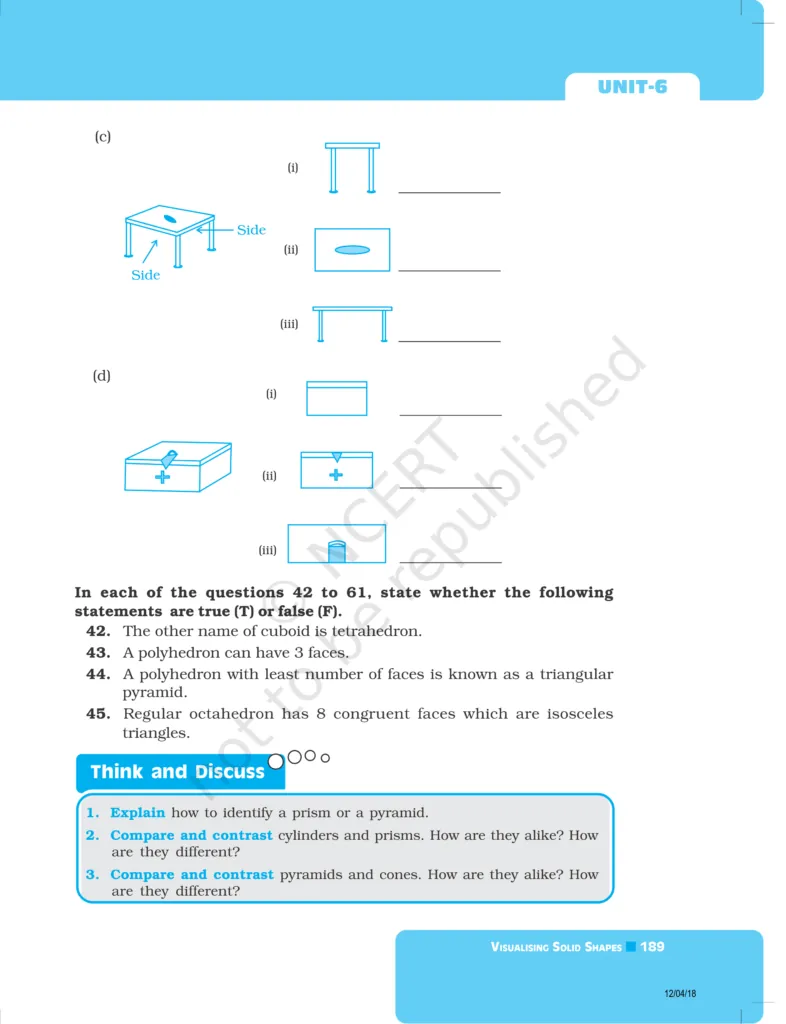 Download The PDF of NCERT Exemplars Class 8 Maths Chapter 6 "Visualising solid shapes"