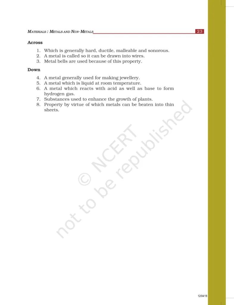 So, without wasting more time let’s start.NCERT Exemplar Class 8 Science Chapter 4 - Materials: Metals and Non-Metals