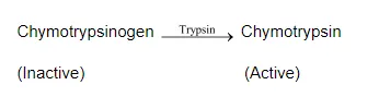 Solution. The enzyme trypsin (present in the pancreatic juice) activates the inactive enzyme chymotrypsinogen into chymotrypsin.