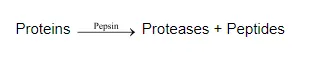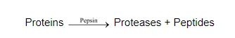 Pepsinogen $\stackrel{\mathrm{HCl}}{\longrightarrow}$ Pepsin + Inactive peptide