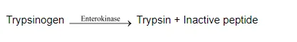 The activated trypsin then further hydrolyses the remaining trypsinogen and activates other pancreatic enzymes such as chymotrypsinogen and carboxypeptidase. Trypsin also helps in breaking down proteins into peptides.
