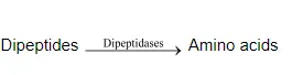 The proteases hydrolyse peptides into dipeptides and finally into amino acids.