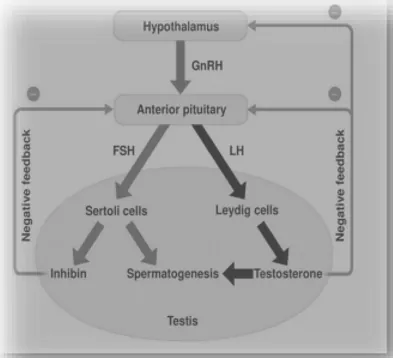 - In males, FSH is required for spermatogenesis within the specialised cells of testes called Sertoli cells. Once mature sperms are produced, Sertoli cells release an inhibitory hormone known as inhibin that suppresses the process of FSH production.