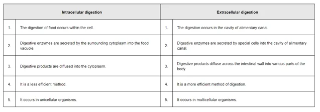 Question 4: Distinguish between intracellular and extracellular digestion?