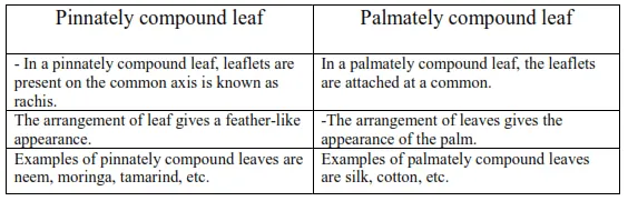 -Following are the differences between pinnately compound leaf and palmately compound leaf