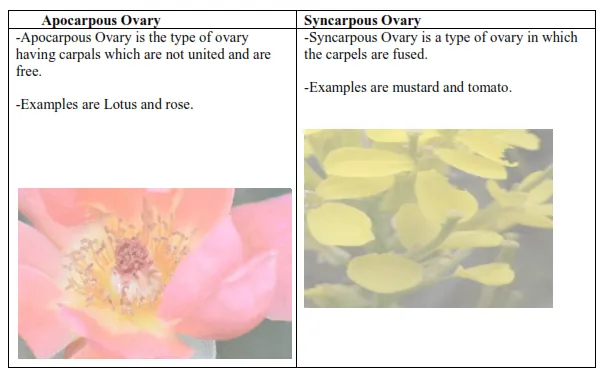 Apocarpous and syncarpous ovary