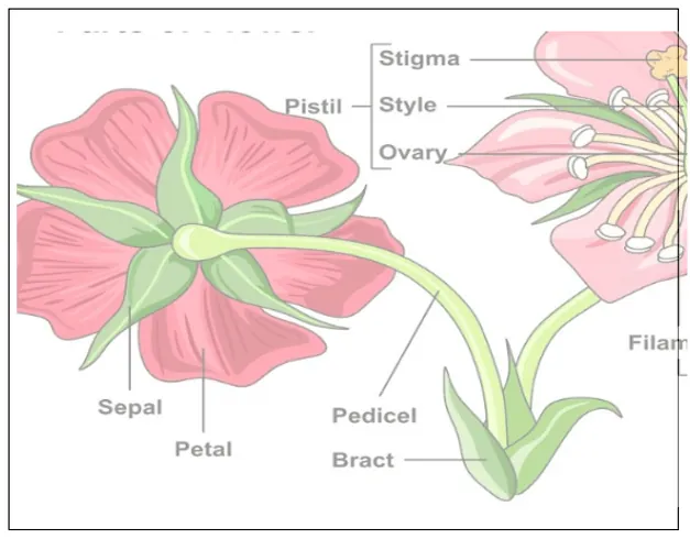 Diagram showing different parts of the flower