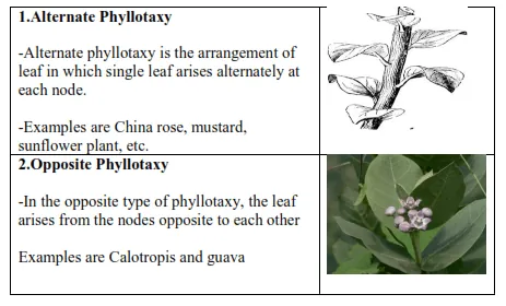 Question 4. Explain with suitable examples of the different types of phyllotaxy.