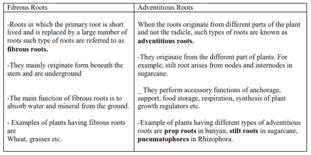 (b) Fibrous root and adventitious root