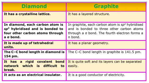 Question 12: Explain the difference in properties of diamond and graphite on the basis of their structures.