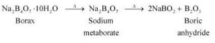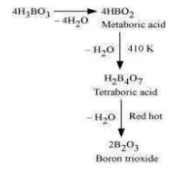 On further heating, this yields boric oxide $\mathrm{B}_{2} \mathrm{O}_{3}$.
