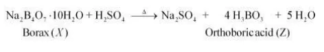 When concentrated acid is added to borax, white crystals of orthoboric acid $(Z)$ are formed.