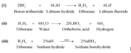 (vi) $3 \mathrm{~B}_{2} \mathrm{H}_{6}+6 \mathrm{NH}_{3} \longrightarrow 3\left[\mathrm{BH}_{2}\right.$