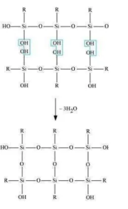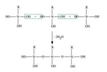 Solution. $\mathrm{RSiCl}_{3}+3 \mathrm{H}_{2} \mathrm{O} \longrightarrow \mathrm{RSi}(\mathrm{OH})_{3}+3 \mathrm{HCl}$