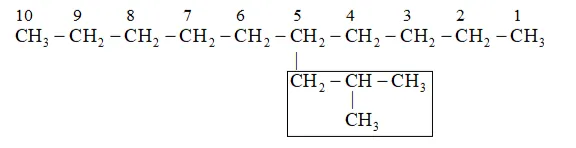 IUPAC name: 5 -(2-Methylpropyl)-decane