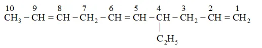 IUPAC name: 4-Ethyldeca-1, 5,8 -triene