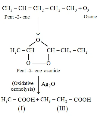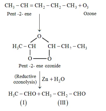 (i) Pent-2-ene undergoes ozonolysis as: