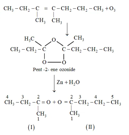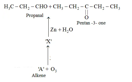Question 7. Propanal and pentan-3-one are the ozonolysis products of an alkene? What is the structural formula of the alkene?