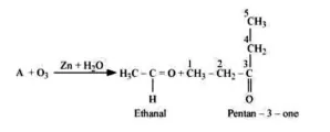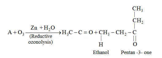 Question 5. An alkene ' $\mathrm{A}$ ' on ozonolysis gives a mixture of ethanal and pentan-3-one. Write structure and IUPAC name of 'A'.