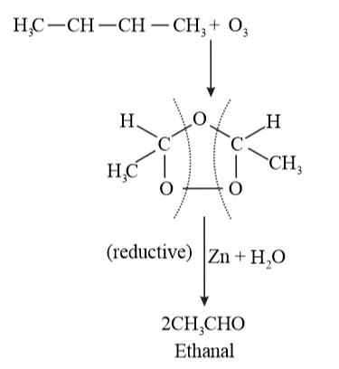 In presence of $\mathrm{O}_{2} / \mathrm{H}_{2} \mathrm{O}, \mathrm{Zn}, \mathrm{O}_{3} /\left(\mathrm{CH}_{3}\right) \mathrm{S}, \mathrm{O}_{3} / \mathrm{PPb}_{3}, \mathrm{O}_{3} / \mathrm{LiAlH}_{4}$ or $\mathrm{NaBH}_{4}$ reductive ozonolysis takes place and products.