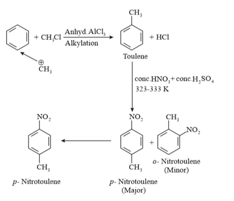 (iii) Benzene can be converted into $p$ -nitrotoulene as: