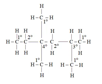 Question 14. In the alkane $\mathrm{H}_{3} \mathrm{C}-\mathrm{CH}_{2}-\mathrm{C}\left(\mathrm{CH}_{3}\right)_{2}-\mathrm{CH}_{2}-\mathrm{CH}\left(\mathrm{CH}_{3}\right)_{2}$, identify $1^{\circ}, 2^{\circ}, 3^{\circ}$ carbon atoms and give the number of $\mathrm{H}$ atoms bonded to each one of these.