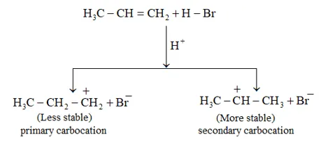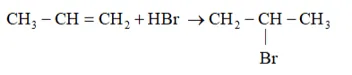 This reaction follows Markovnikov's rule where the negative part of thereagent addendum is attached to the carbon atom having a lesser number of hydrogen atoms. While in the presence of benzoyl peroxide, an addition reaction takes place anti Markovnikov's rule. The reaction follows a free radical mechanism