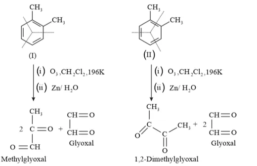 Question 17. Write down the products of ozonolysis of 1,2 -dimethylbenzene (o - xylene). How does the result support Kekulé structure for benzene?
