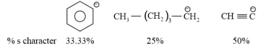 As the s-character increases, the electronegativity of carbon increases and the electrons of $\mathrm{C}-\mathrm{H}$ bond pair lie closer to the carbon atom. As a result, partial positive charge of $\mathrm{H}^{-}$ atom increases and $\mathrm{H}^{+}$ ions are set free.