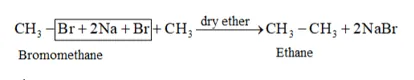 Wurtz reaction cannot be used for the preparation of unsymmetrical alkanes because if two dissimilar alkyl halides are taken as the reactants, then a mixture of alkanes is obtained as the products. Since the reaction involves free radical species, a side reaction also occurs to produce an alkene. For example, the reaction of bromomethane and iodoethane gives a mixture of alkanes.
