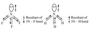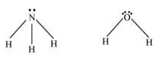 The central atom ( $\mathrm{N}$ ) in $\mathrm{NH}_{3}$ has one lone pair and there are three bond pairs. In $\mathrm{H}_{2} \mathrm{O}$, there are two lone pairs and two bond pairs.